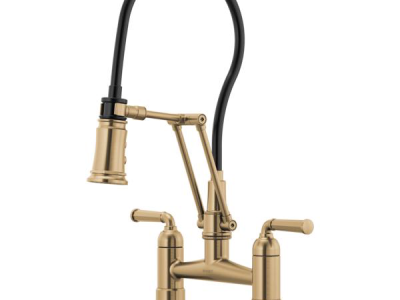 Brizo® 62274LF-GL Rook® Articulating Bridge Faucet, Commercial, 1.8 gpm Flow Rate, 8 in Center, 360 deg Swivel Spout, Luxe Gold, 2 Handles, Domestic