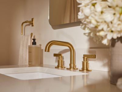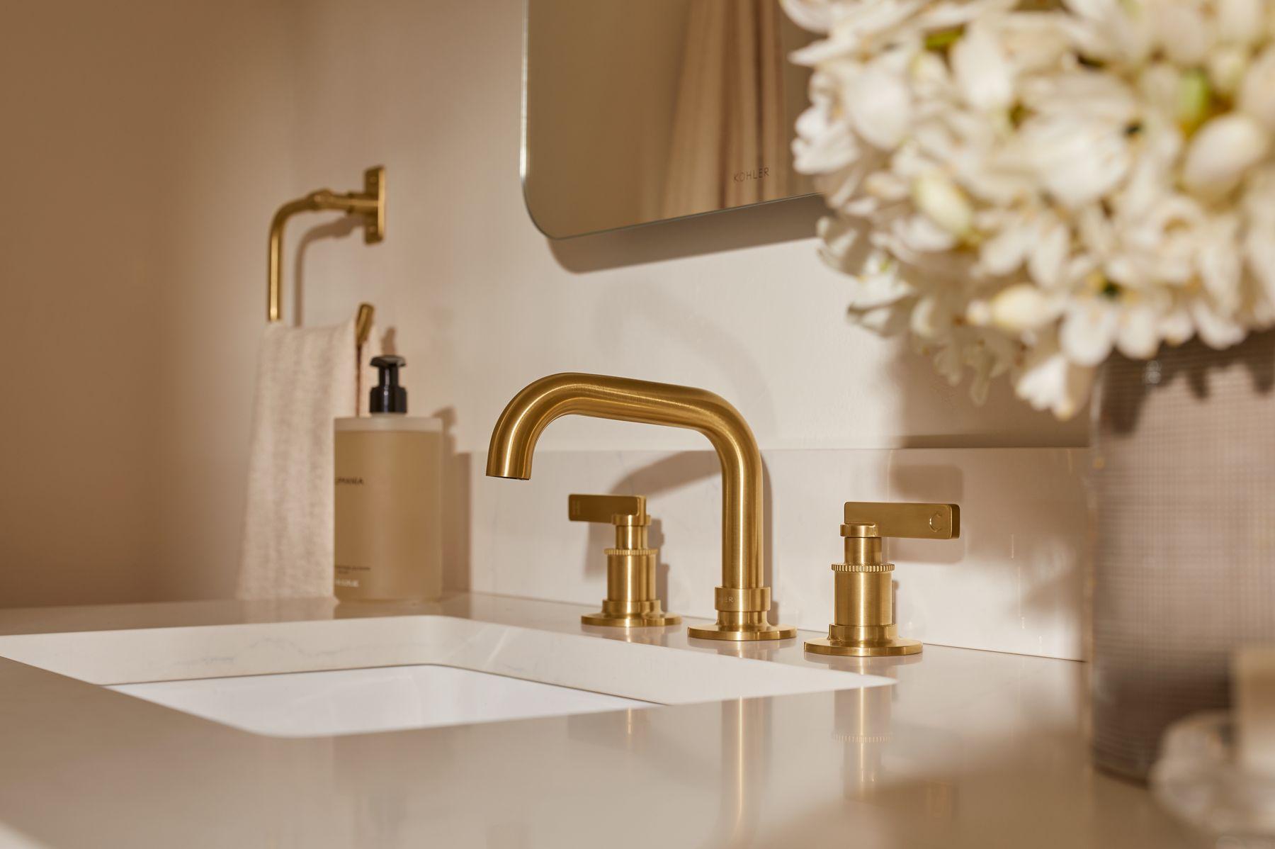 Drawing inspiration from the archives, the KOHLER(R) Castia bathroom faucet and accessory collection from Kohler x Studio McGee combines classic and modern influences in a timeless expression for the home. Crafted with meticulous attention to detail, the widespread bathroom sink faucet showcases the artistry of precision machine knurling and delicately stamped levers while the entirety of the collection displays stacked connection points in a subtle homage to the raw beauty of pipe fittings. Ever versatile, Castia effortlessly harmonizes with a variety of environments.