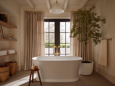 Drawing inspiration from the archives, the Castia bathroom faucet and accessory collection from Kohler x Studio McGee combines classic and modern influences in a timeless expression for the home. Crafted with meticulous attention to detail, the bathroom accessories showcase stacked connection points in a subtle homage to the raw beauty of pipe fittings. Ever versatile, the Castia collection effortlessly harmonizes with a variety of environments.