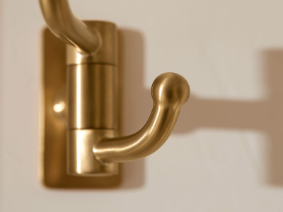- Double robe hook provides convenient hanging storage of robes, towels, and other bath items