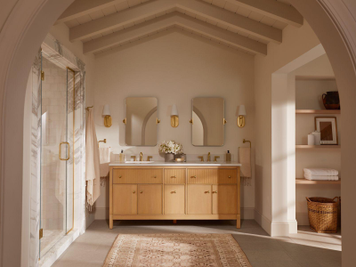 Drawing inspiration from the archives, the Castia bathroom faucet and accessory collection from Kohler x Studio McGee combines classic and modern influences in a timeless expression for the home. Crafted with meticulous attention to detail, the bathroom accessories showcase stacked connection points in a subtle homage to the raw beauty of pipe fittings. Ever versatile, the Castia collection effortlessly harmonizes with a variety of environments.