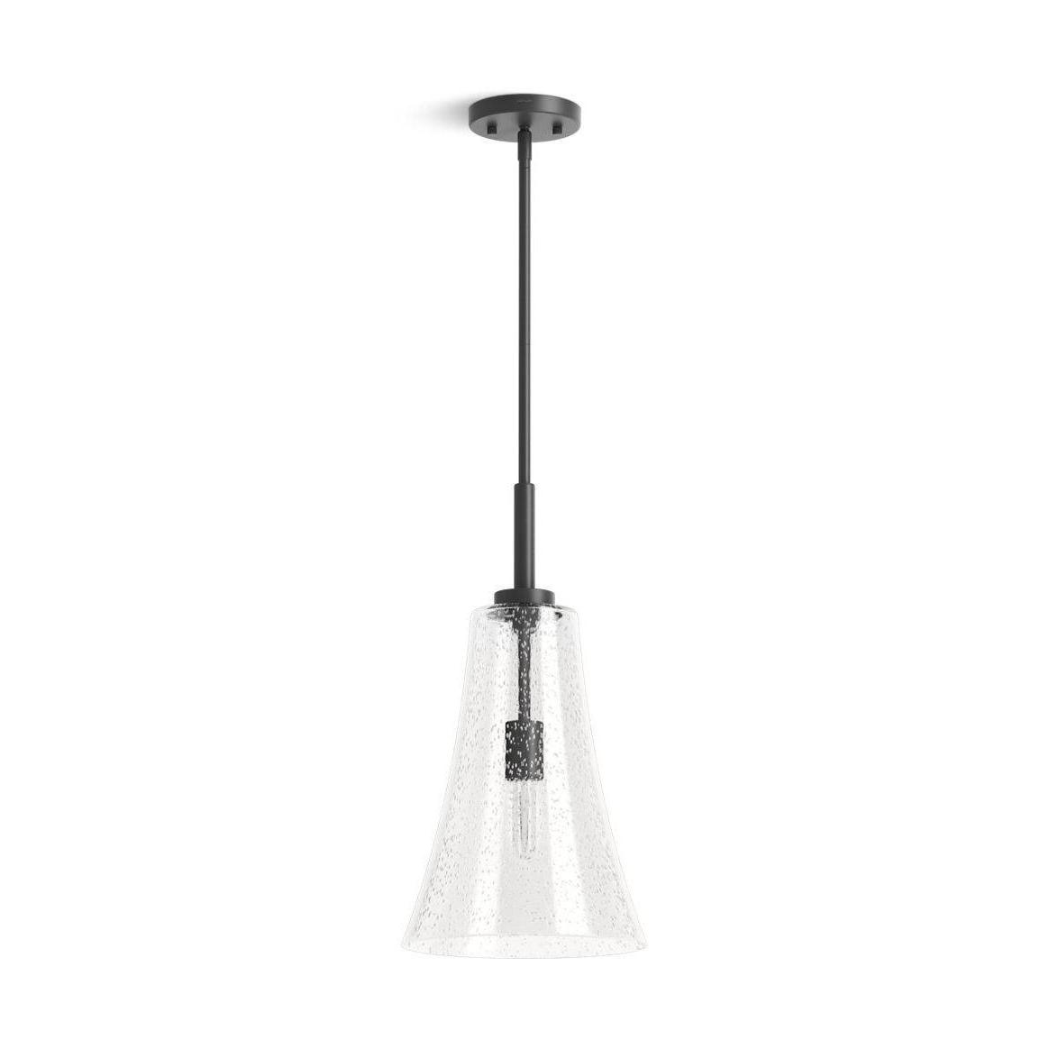 Kohler®, 26850-PE01-BLL, Mini Pendant, Series: 26850, 120 V, 60 W Fixture, 60 W Lamp, E26 Medium Lamp Base, 1 Lamps, Seeded Glass Shade, Ceiling Mounting, Steel/Glass/Aluminum/Brass Housing Material, Matte Black Housing Finish, 27-11/16 in H x 10 in W x 10 in D Dimensions