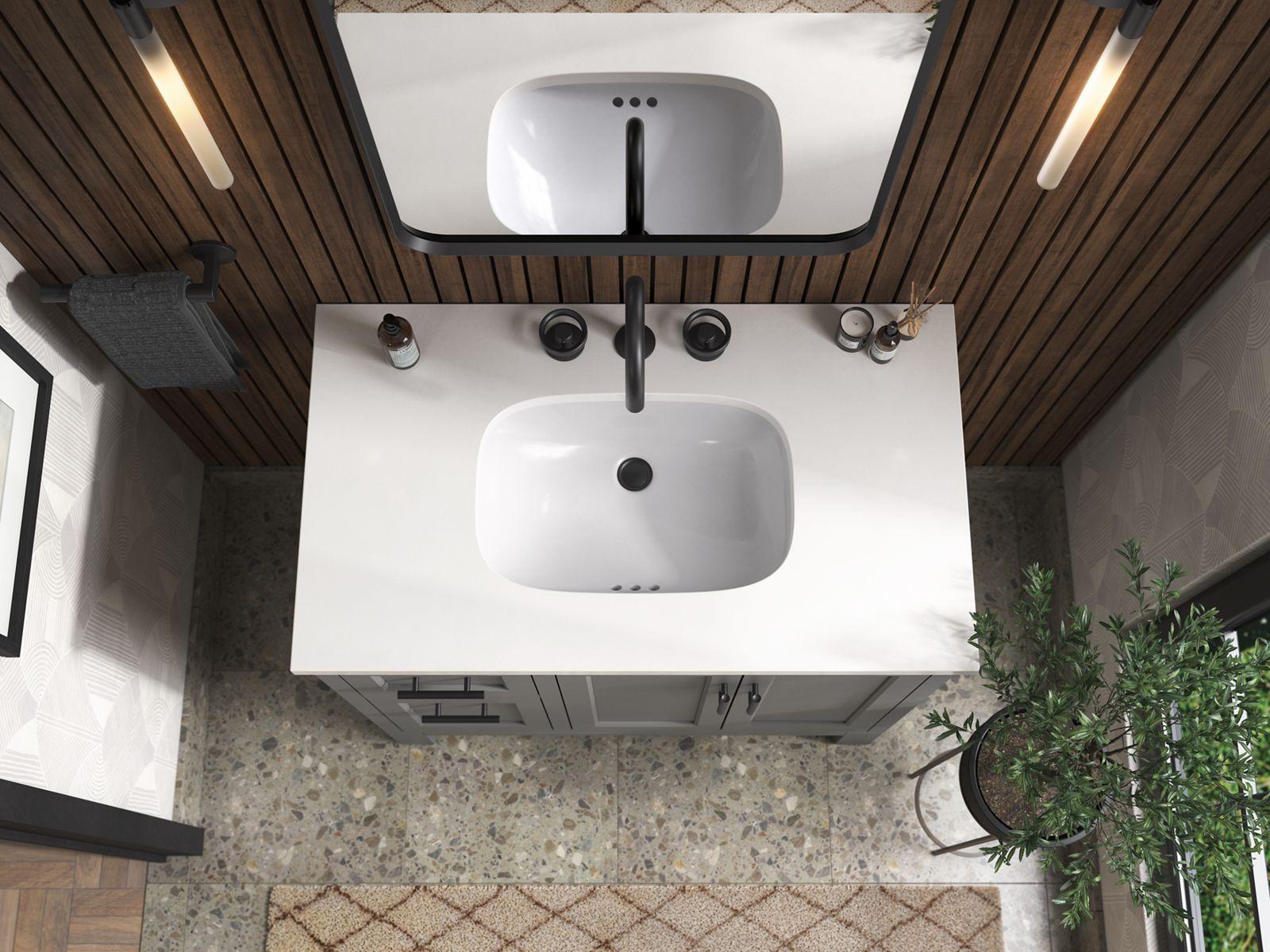 - Separate vanity top makes for simplified installation