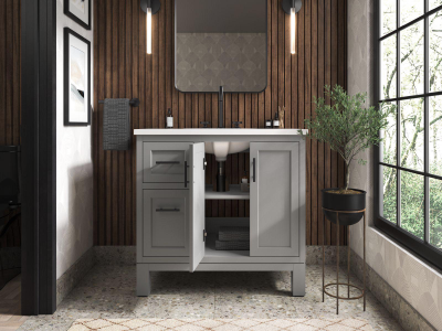 - Brushed Nickel hardware included on the White and Atmos Grey vanities