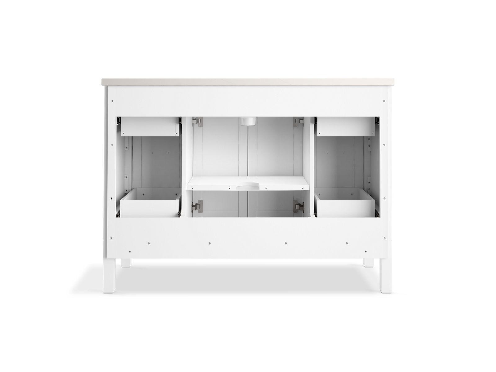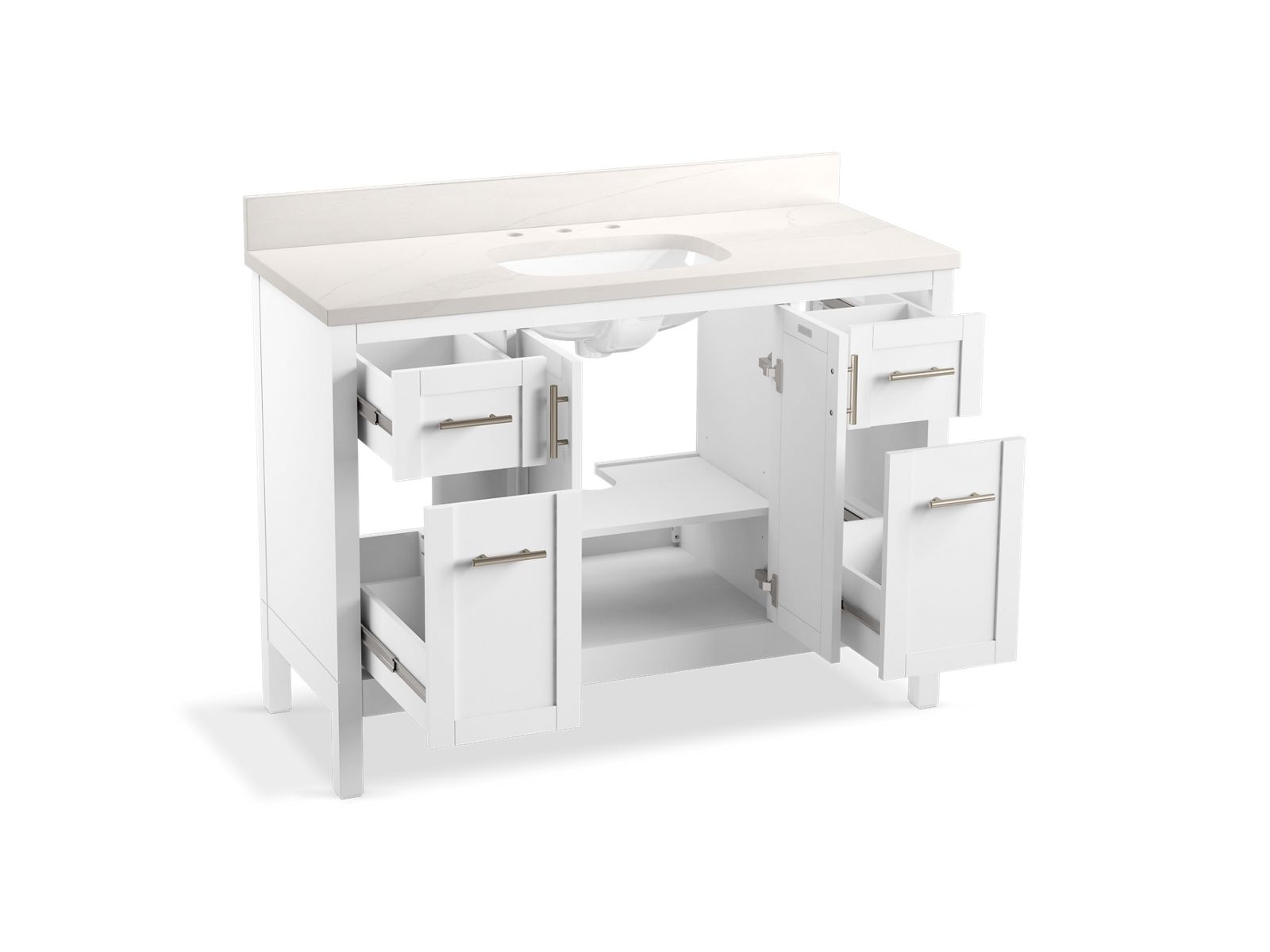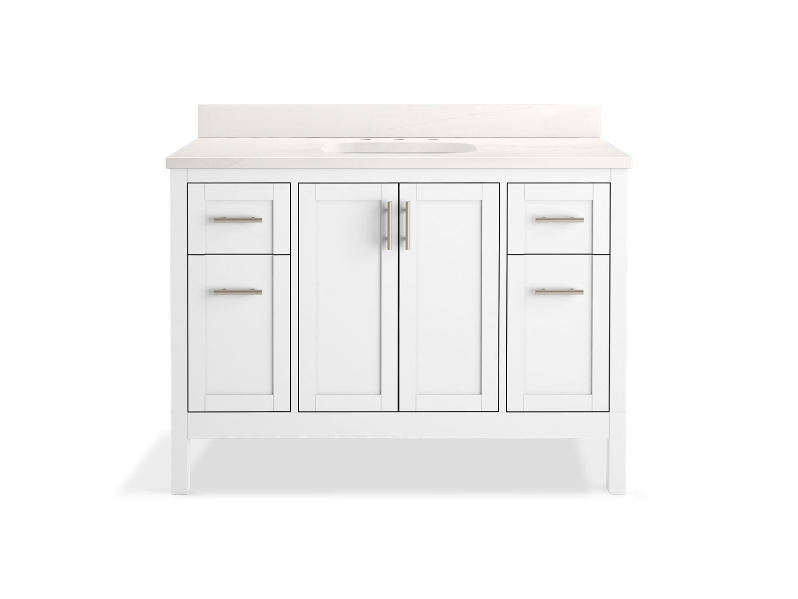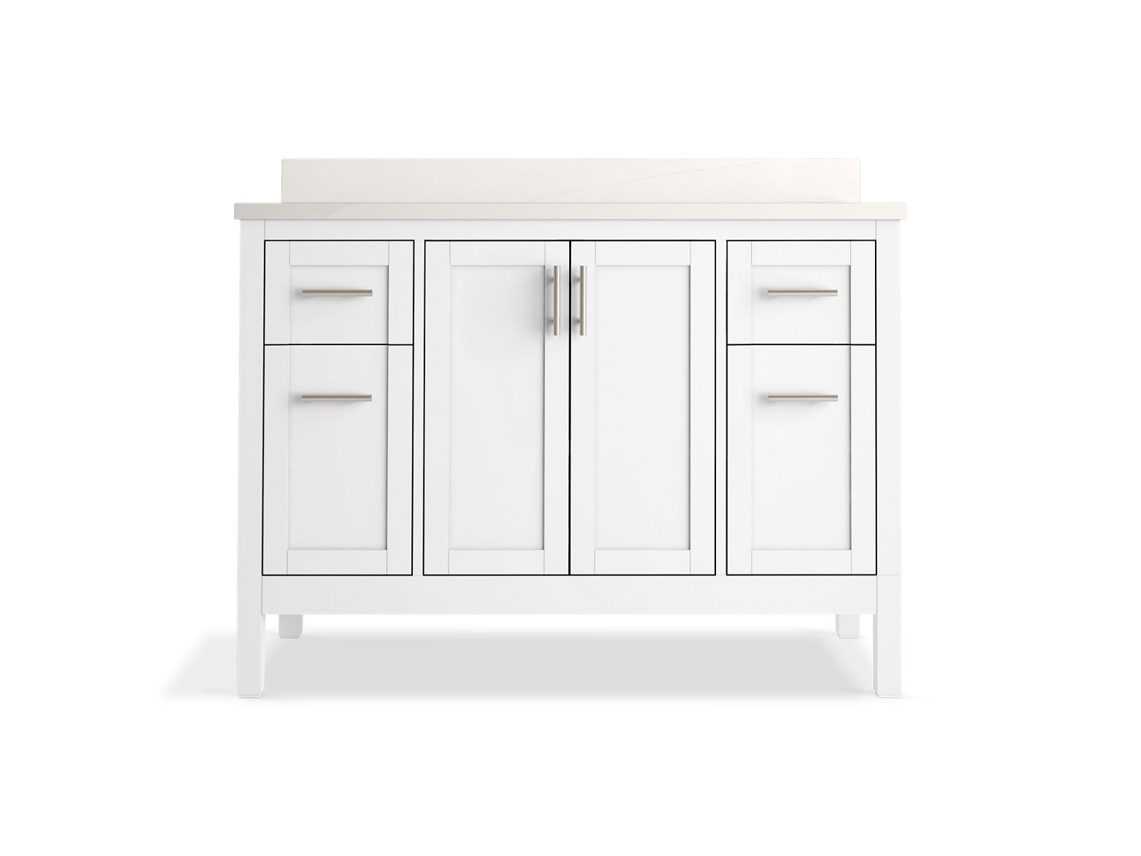 Kohler®, 39606-ASB-0, Vanity Cabinet with Sink and Top, Hadron™ Collection, 35-3/4 in Overall Height, 48 in Overall Width, 20-3/8 in Overall Depth, Wood Cabinet, White Cabinet, Vitreous China Basin, 2 Doors, 4 Drawers, 1 Basins, Quartz Top, 3 Faucet Holes, 8 in Faucet Hole Center Spacing