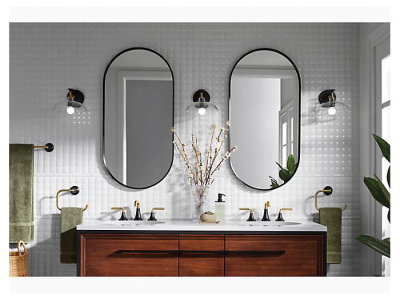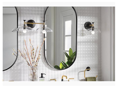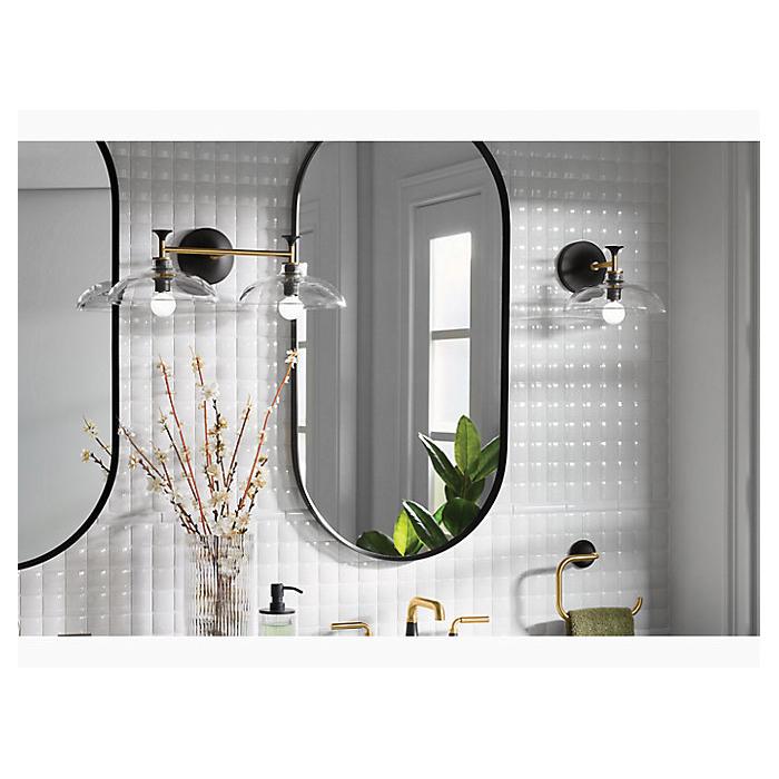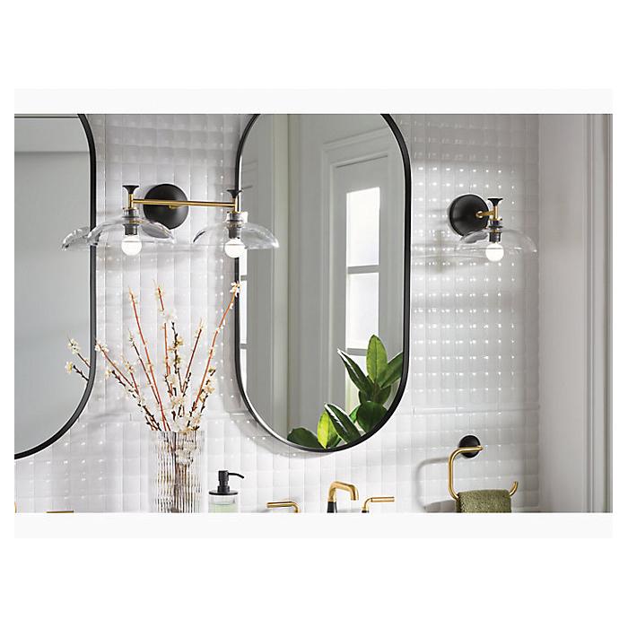 With domed, clear-glass shades, mixed-metal trumpet bases, and intersecting rod supports, the KOHLER® Tone lighting collection delivers a fresh take on midcentury modern style. Blending minimalism, warmth, and thoughtful functionality, Tone lighting fixtures are versatile enough for any space in your home. These contemporary pieces were created to complement the KOHLER® Tone faucet collection for a cohesive home design.