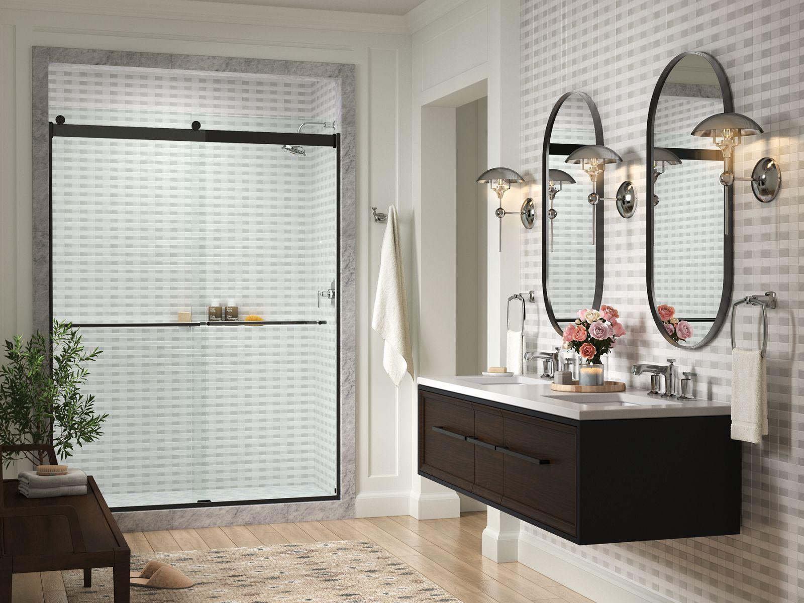 Bringing new technology and sleek style to the contemporary bathroom, KOHLER® Levity plus clear frameless sliding shower doors feature an innovative roller design that provides an amazingly smooth, quiet sliding action for a difference you can feel. Fully bypassable glass panels complement the modern minimalist look and make installation easier than ever by allowing for adjustability while the door is hanging. Interior and exterior towel bars offer practical storage, while premium 5/16"-thick Crystal Clear glass offers a luxurious feel.