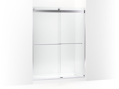 Kohler® 702424-L-SHP 702424-L Levity® Plus Sliding Door, Frameless Frame, Crystal Clear Tempered Glass, Bright Polished Silver, 5/16 in THK Glass, 71-9/16 in H Opening, 56-5/8 to 59-5/8 in W Opening