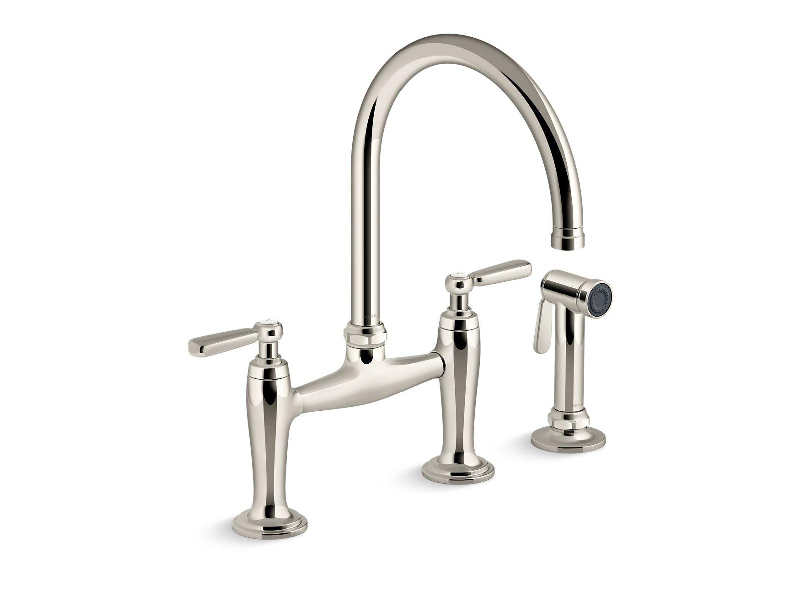Kohler(R) K-28356-SN Edalyn(TM) by Studio McGee Two-Hole Bridge Kitchen Sink Faucet with Side Sprayer - Vibrant Polished Nickel
