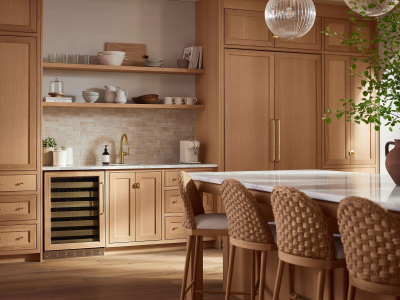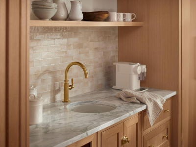Drawing inspiration from the archives, the Edalyn kitchen faucet collection from Kohler x Studio McGee combines classic and modern influences in a timeless expression for the home. Transitional by design, each faucet is characterized by a distinguished, high-profile spout that is complemented by stacked detailing and clean lines. Beyond its striking appearance, the collection embraces practicality, providing superior spray performance for tackling kitchen tasks.