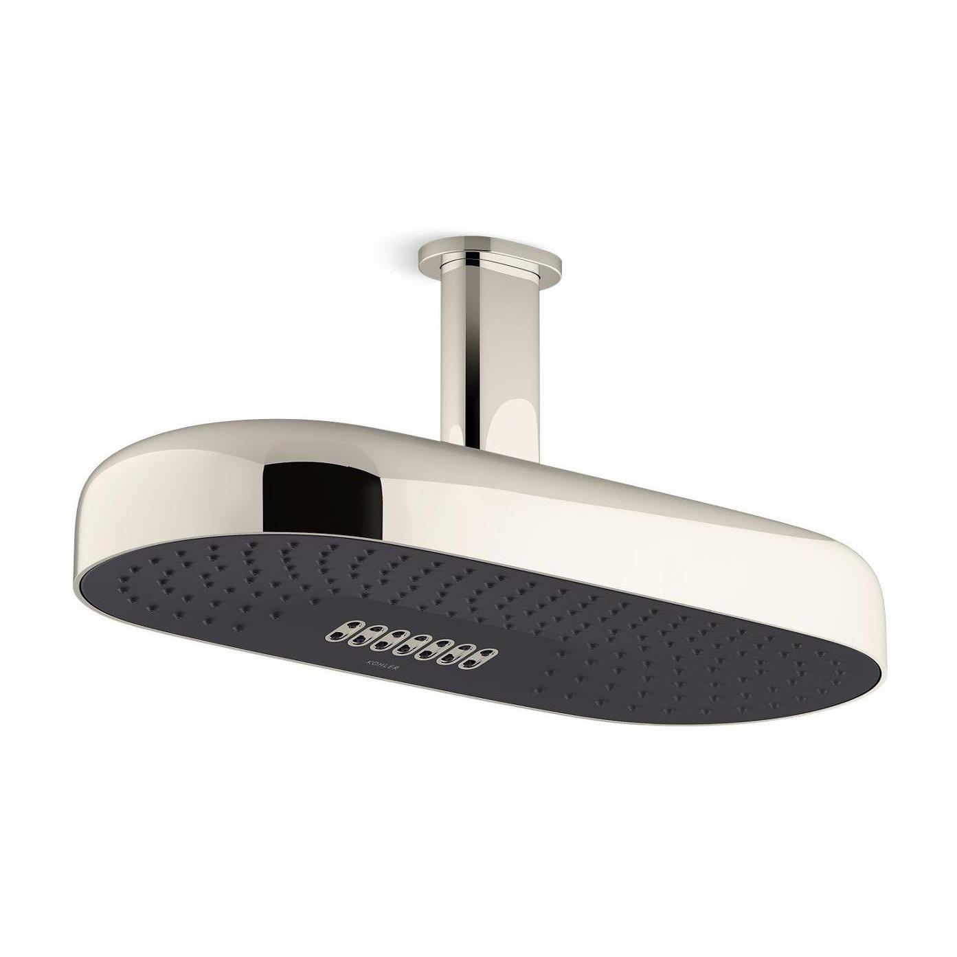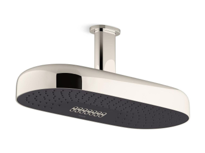 Relax in a shower that simulates a warm summer rain and targets sore shoulders with swirling kinetic streams—two distinct experiences, each available separately within one rainhead. Choose from Full Coverage with Katalyst® air-induction technology, mixing air and water to produce large water droplets for a powerful, consistent overhead shower spray experience, and more-focused Deep Massage kneading streams, angled to relieve sore muscles. The innovative KOHLER® Statement Oblong two-function ceiling-mount rainhead also boasts a contemporary, minimalist design that coordinates with many KOHLER® faucets and accessories.