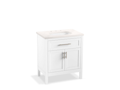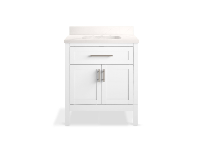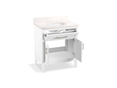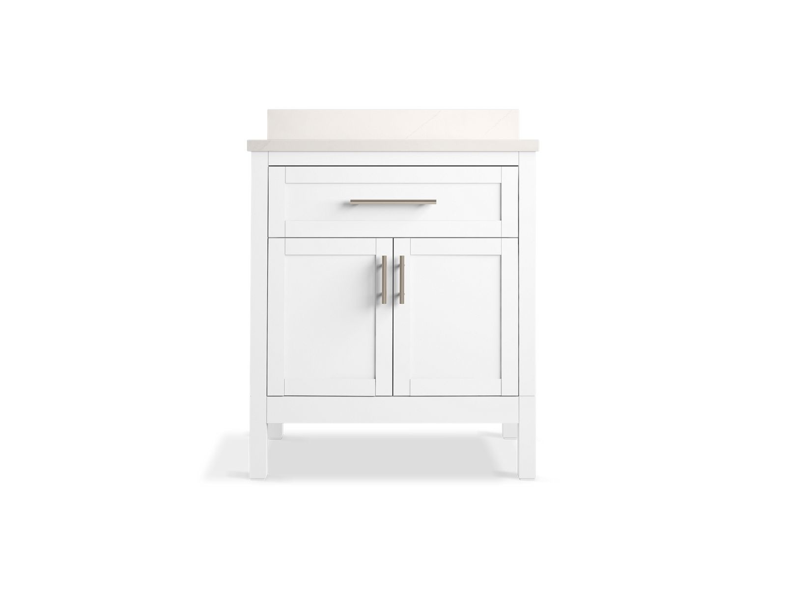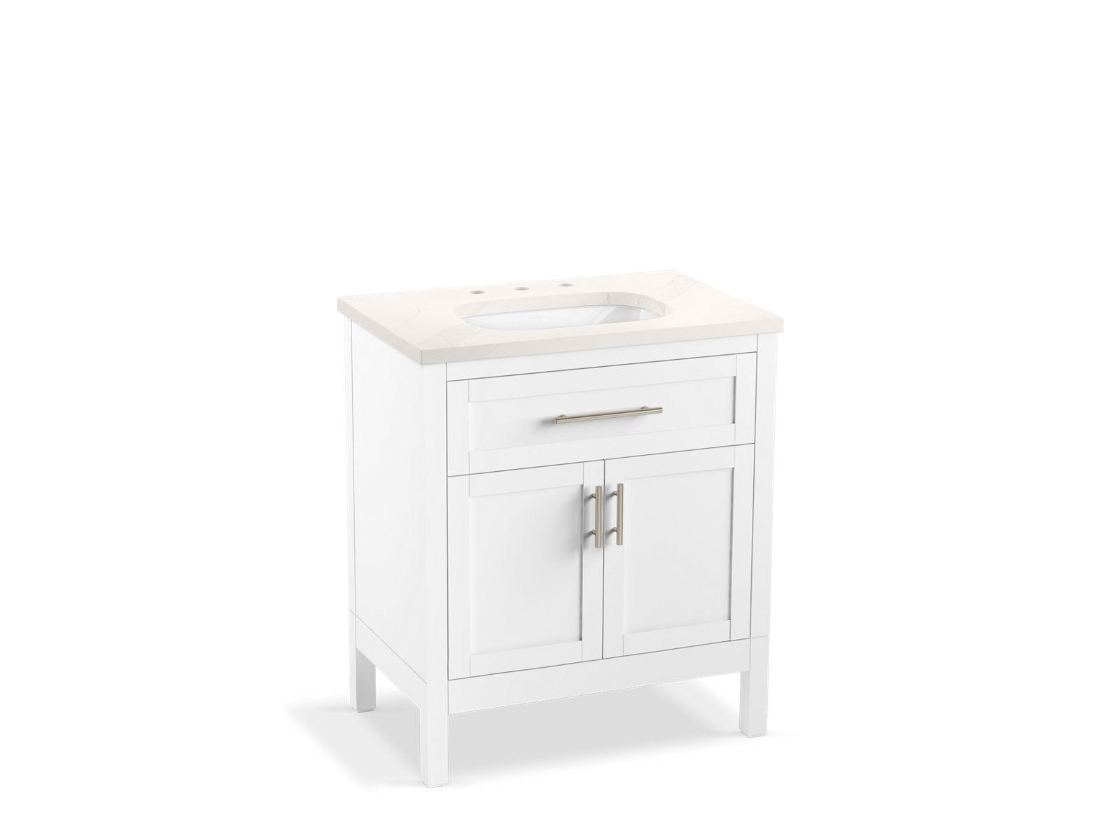 Kohler®, 39604-ASB-0, Vanity Cabinet with Sink and Top, Hadron™ Collection, 35-3/4 in Overall Height, 30 in Overall Width, 20-3/8 in Overall Depth, Wood Cabinet, White Cabinet, Vitreous China Basin, 2 Doors, 1 Drawers, 1 Basins, Quartz Top, 3 Faucet Holes, 8 in Faucet Hole Center Spacing