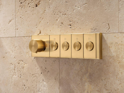 Thermostatic technology allows you to maintain consistent temperature and flow control for the ultimate shower experience. This sleek KOHLER® Anthem thermostatic valve control panel with recessed push buttons is designed for use with select KOHLER® Anthem four-port thermostatic valves. The trim plate includes a temperature control knob with integrated adjustable high-temperature limit stop as well as shower outlet activation buttons that pop out for the adjustment of water flow (up to 8 gpm).
