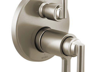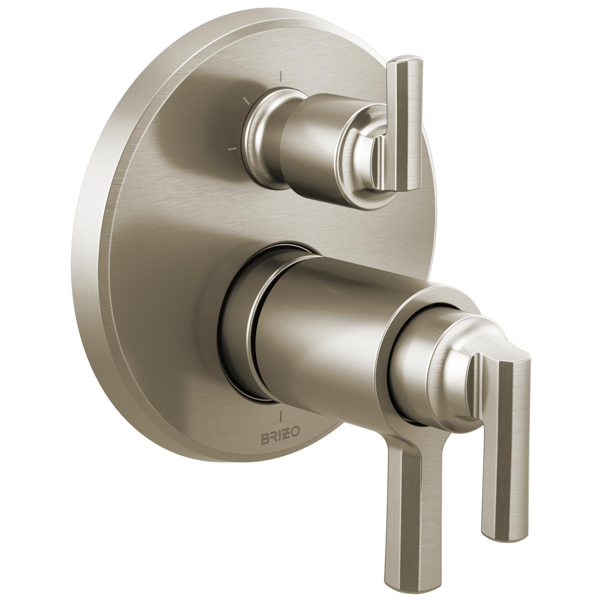Brizo® Valve Trim, Levoir™ Collection, Valve Flow Rate 7.2 gpm, 3 Handles, Lever Handle, 6-5/8 in Dia Trim, Thermostatic Ceramic Cartridge, Hand Shower: No, Wall Mounting, For Use With: MultiChoice® Model R75000 Universal Integrated Shower Diverter Rough, Luxe Nickel