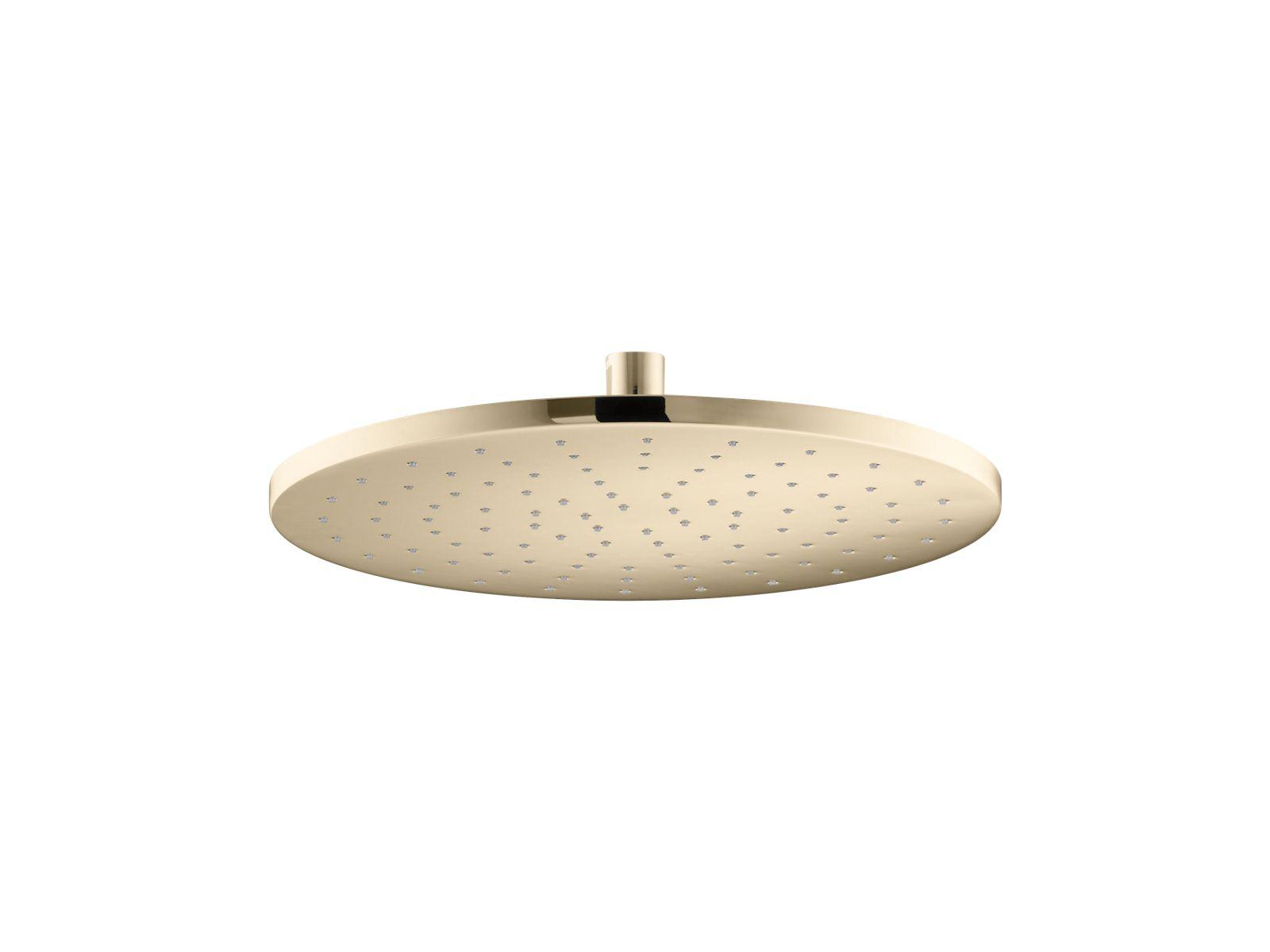 Kohler®, 13690-AF, Rain Showerhead, Single-Function, Series: 13690, Contemporary Collection, 2.5 gpm Flow Rate, 1/2-14 NPT Connection, Round Shape, Ceiling Mounting, 12 in Dia Head, 2-3/4 in Overall Height, Solid-Brass, Vibrant French Gold