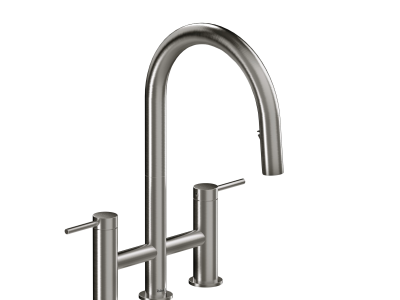 RIOBEL, AZ400SS, Pulldown Kitchen Faucet Bridge, Azure Collection, 1.5 gpm Flow Rate, Deck Mounting, Stainless Steel, Import