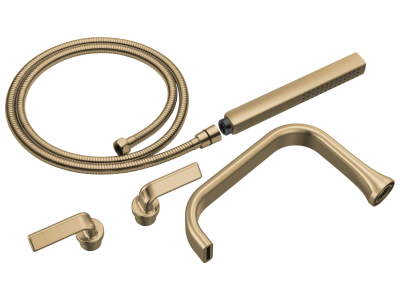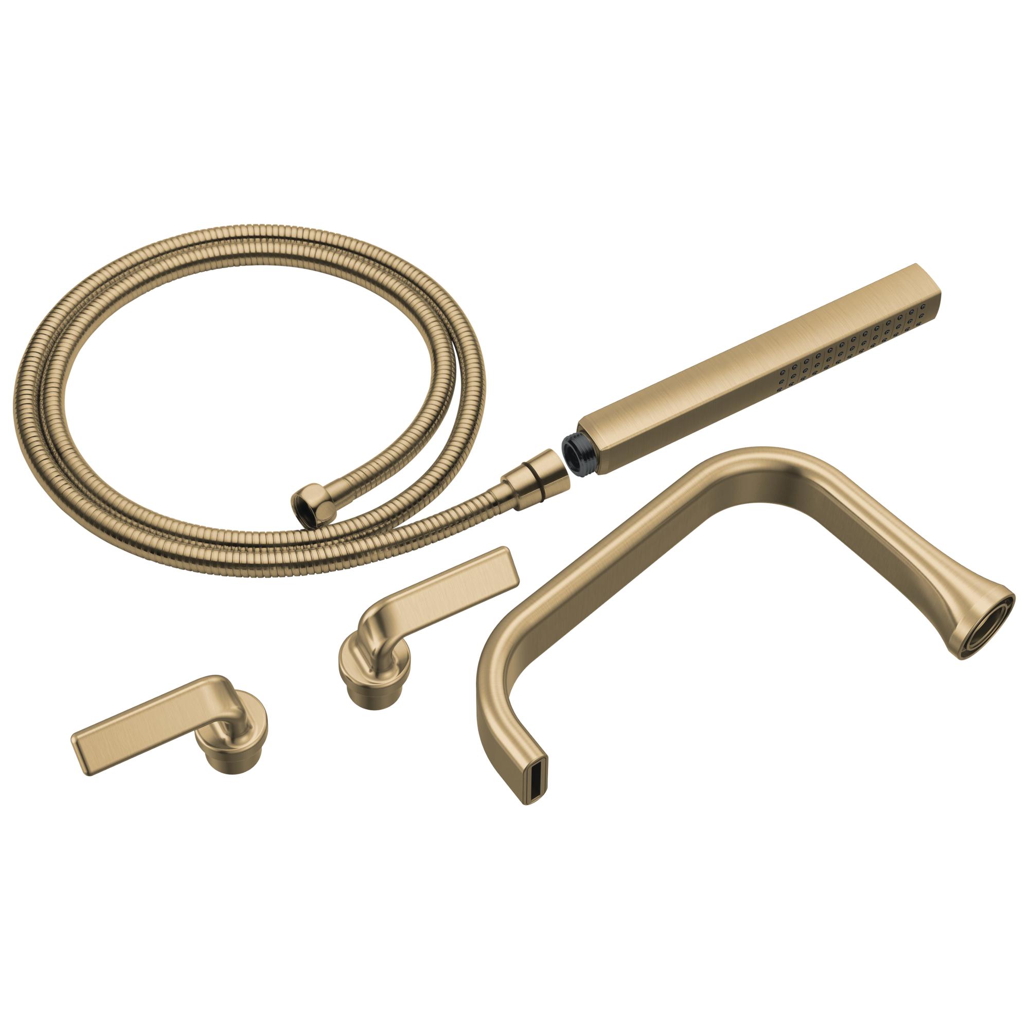 Brizo®, T70367-GL, Tub Filler Trim, 1.75 gpm Flow Rate, 8 in Center Distance, Fixed Spout, 9.125 in Spout Reach, 8.25 in Spout Height, 60 in Hose, Lever Handle, 3 Handles, 2 Faucet Holes, Hand Shower: Yes, 8.94 in H x 16.25 in W x 10.31 in L Dimensions, Brass, Luxe Gold, Import