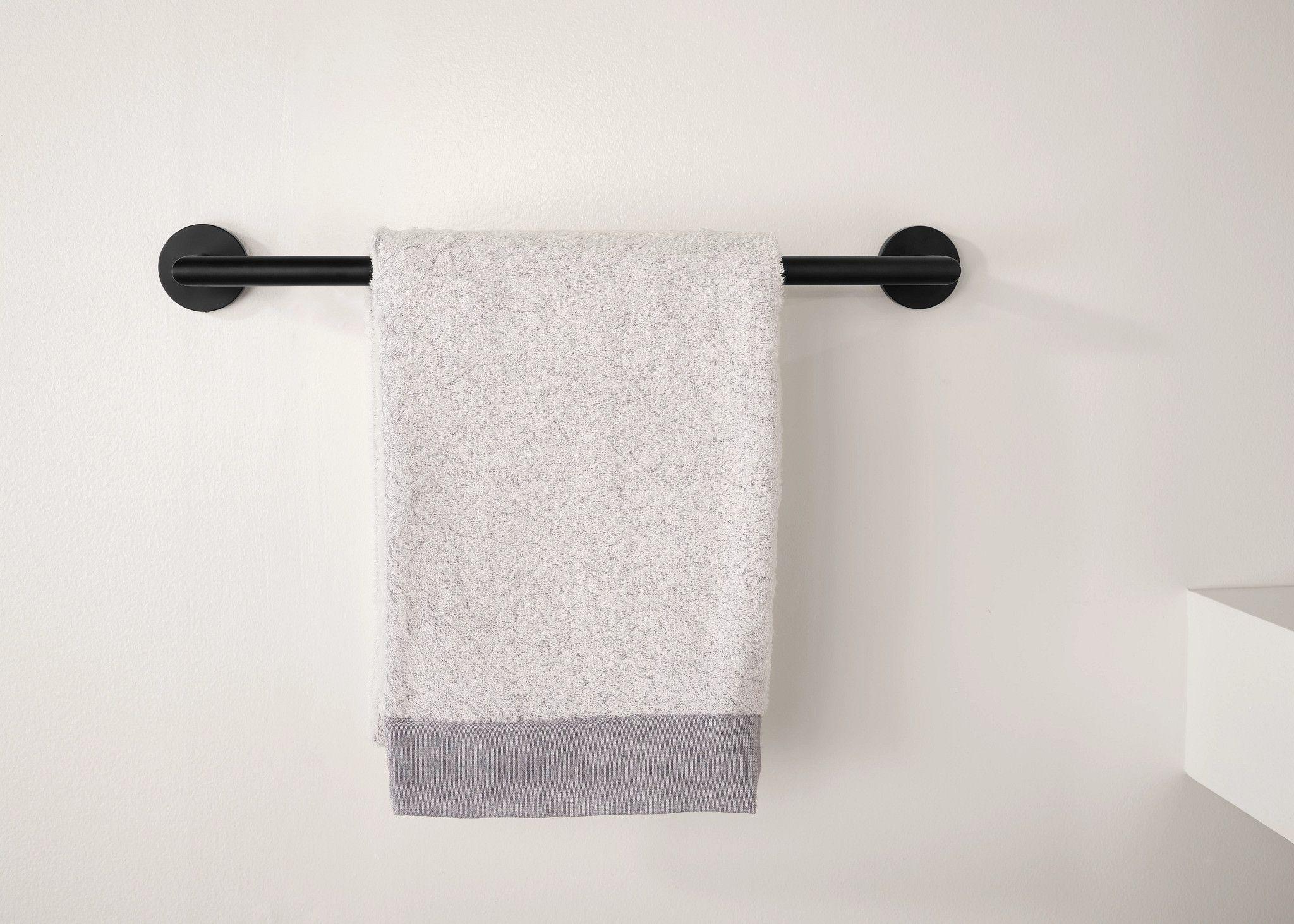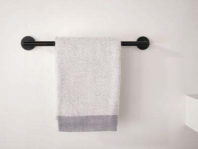 Moen® Towel Bar, Arlys™ Collection, 18 in Bar Length, 3-5/16 in Overall Depth, 2-1/8 in Overall Height, Stainless Steel/Zinc, Matte Black, Import