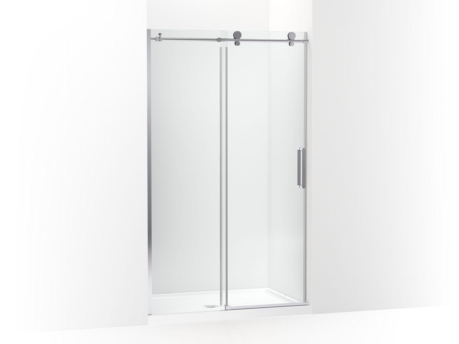 Kohler®, 701695-L-SHP, Shower Door, Sliding, Series: 701695-L, Composed® Collection, 44-1/8 to 47-7/8 in Opening Width, Frameless, Crystal Clear Tempered Glass, 78 in Overall Height, 16-11/16 to 19-11/16 in Walk Through, Vertical Handle, Anodized Aluminum, Bright Polished Silver