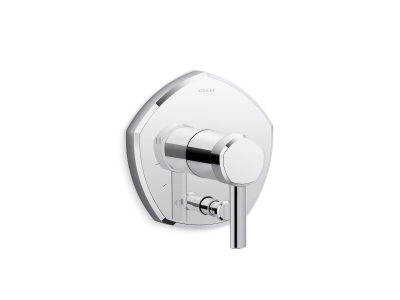 Unapologetically luxurious and truly unforgettable, KOHLER® Occasion bathroom faucets and accessories draw inspiration from 1960s Hollywood glamour and extravagance. Pair this sleek pentagonal Occasion Rite-Temp valve trim with lever handle and a Rite-Temp pressure-balancing valve with push-button diverter to maintain your desired water temperature during pressure fluctuations. Valve sold separately.