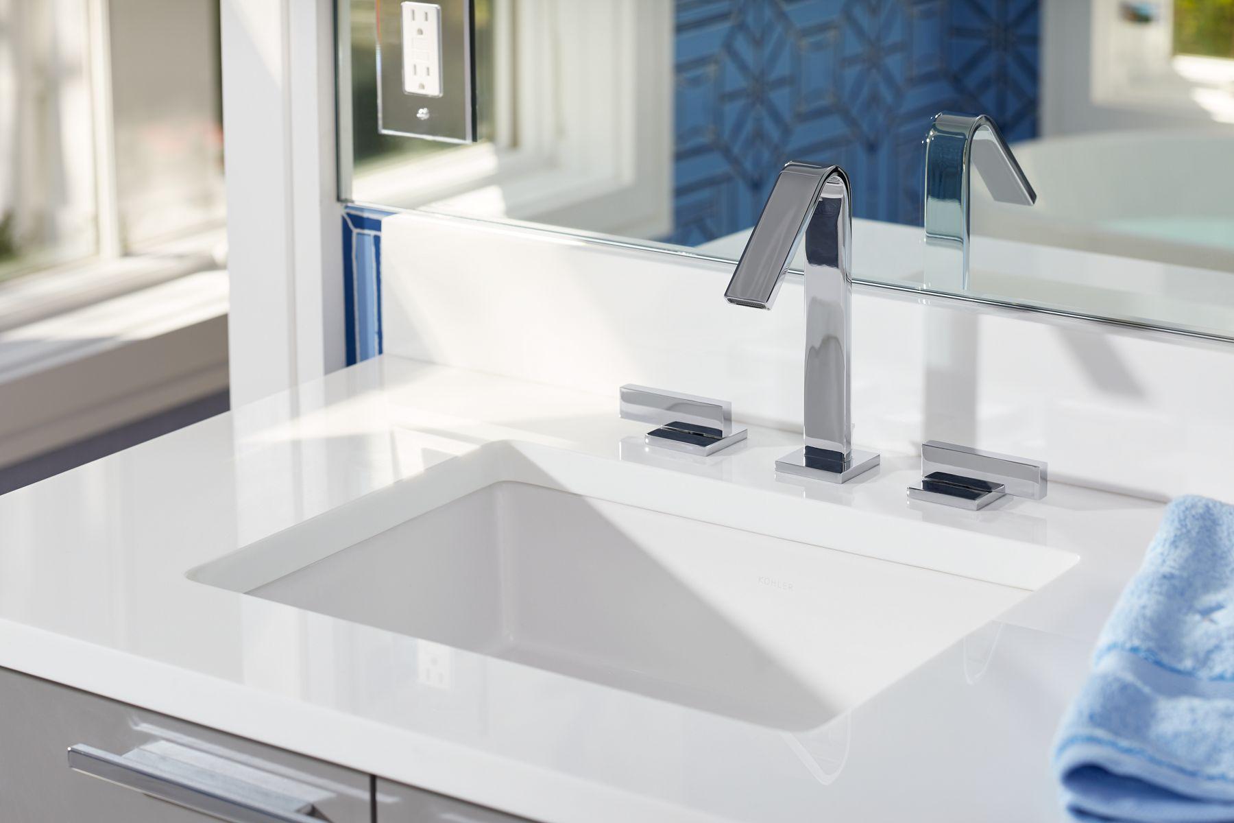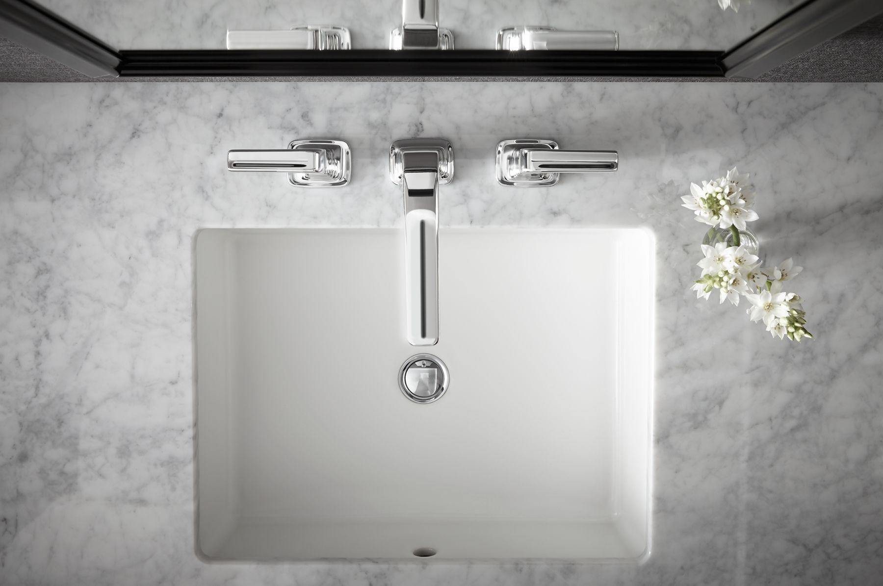 Embrace a sophisticated look with KOHLER® Verticyl, featuring vertical sides for a deep, geometric basin. An undermount installation allows this rectangular undermount bathroom sink to seamlessly integrate into your bath or powder room design.
