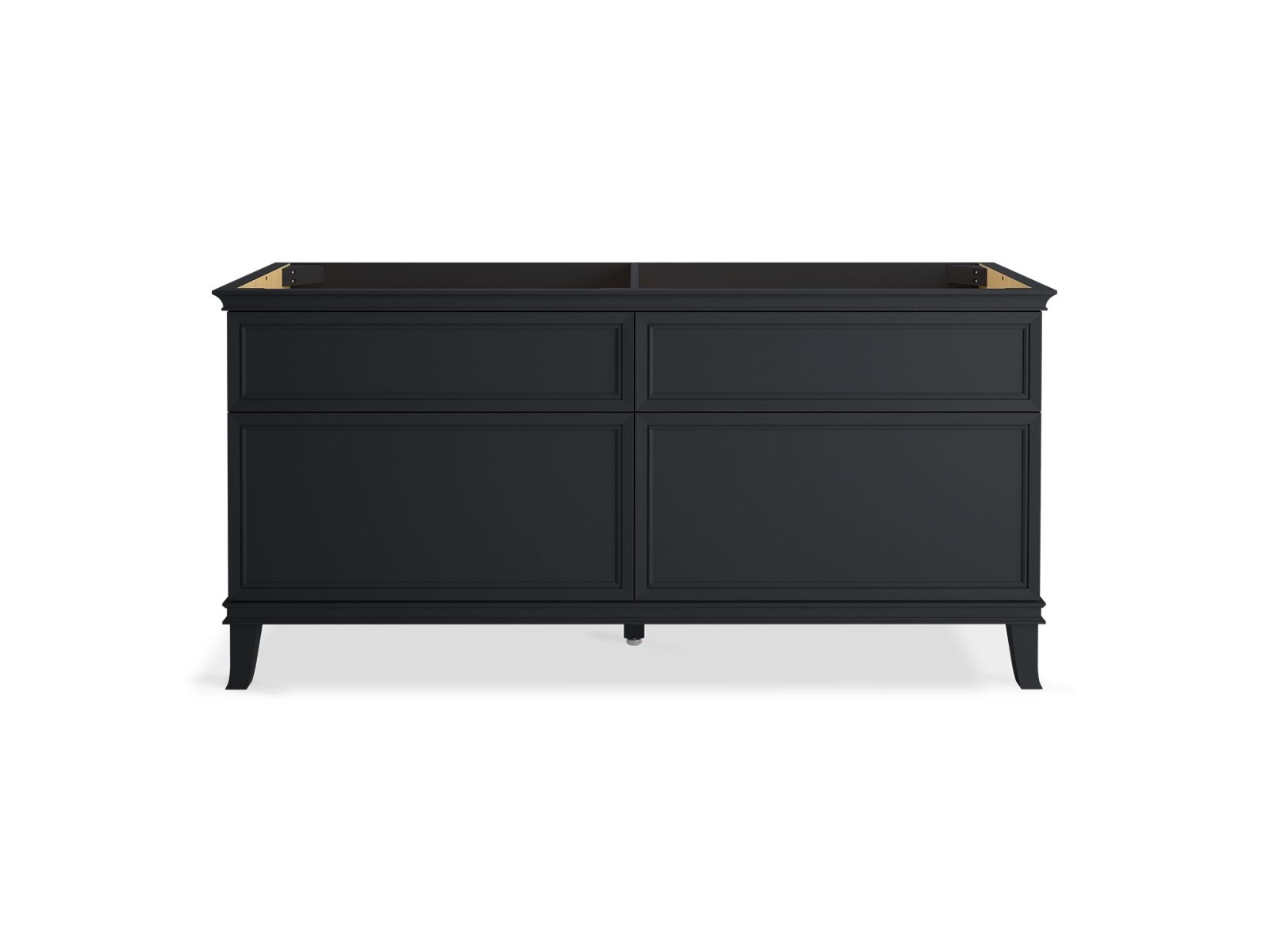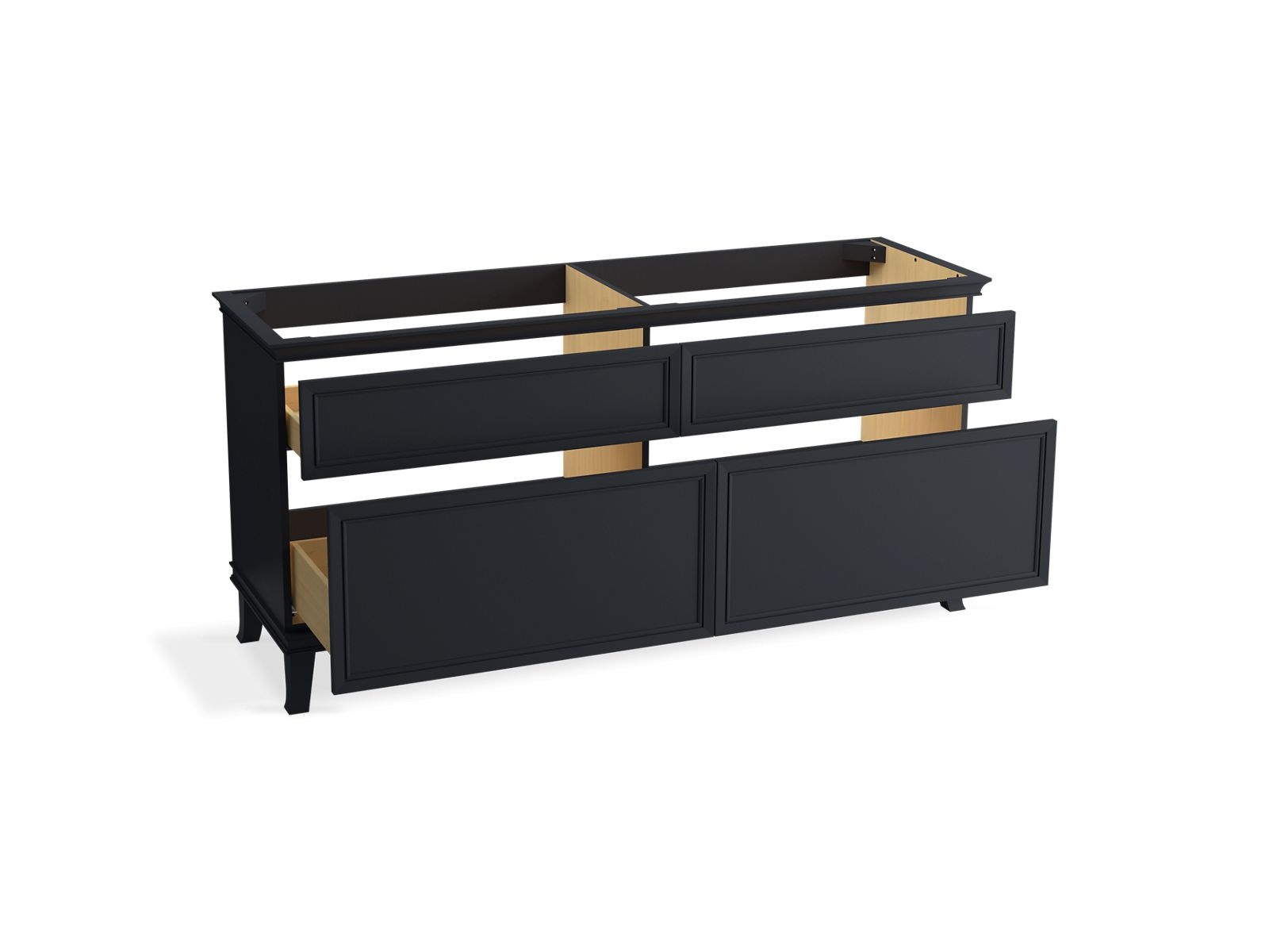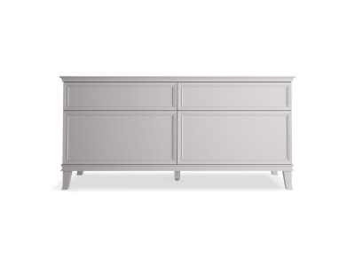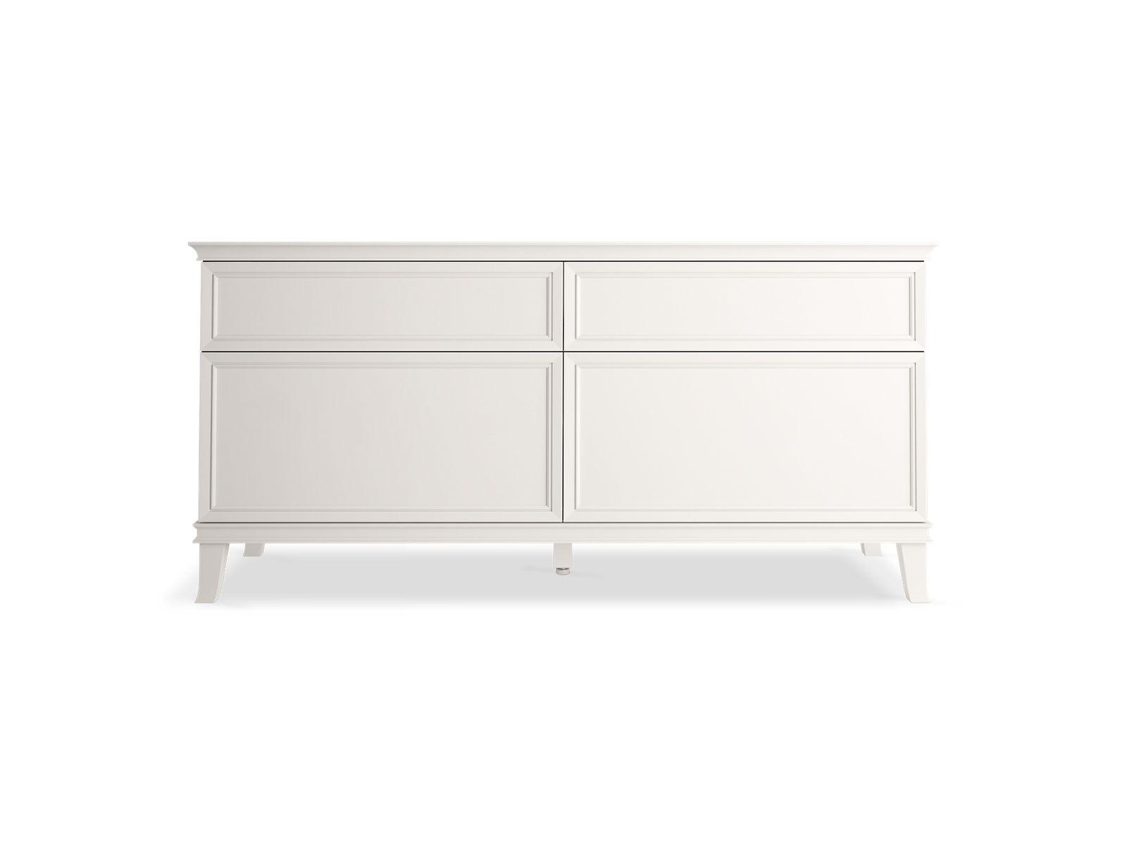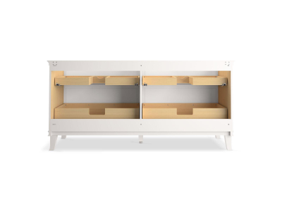 Elegant minimalist design meets midcentury traditional influence and Kohler craftsmanship in the KOHLER® Artifacts bathroom vanity. This simply ornamented, all-drawer cabinet features cornice molding reminiscent of an American Federal-style bookcase while flared solid-wood legs inspired by early nineteenth-century linen presses elevate the 72" freestanding single sink vanity’s style and off-floor functionality. Customize your bathroom centerpiece with a coordinating quartz top, contrasting industrial-style drawer pulls, and organizational in-drawer accessories (sold separately) for a look that fits your aesthetic and space.