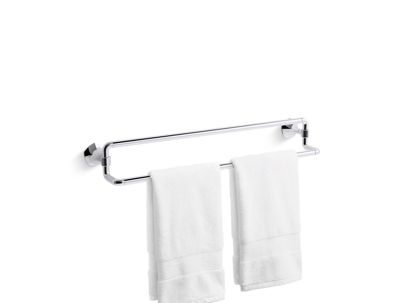 Unapologetically luxurious and truly unforgettable, KOHLER® Occasion bathroom faucets and accessories draw inspiration from 1960s Hollywood glamour and extravagance. Fashioned after the era’s sleek dress lines and bold car designs, the Occasion collection reflects graceful elegance, blending classic midcentury with modern design. Customize your bathroom with the collection’s distinctive pentagonal accents, faceted bases, flowing lines, and delicate edges. The 24" double towel bar adds high fashion and function to your bath space—in finishes to match your faucet and other accessories.