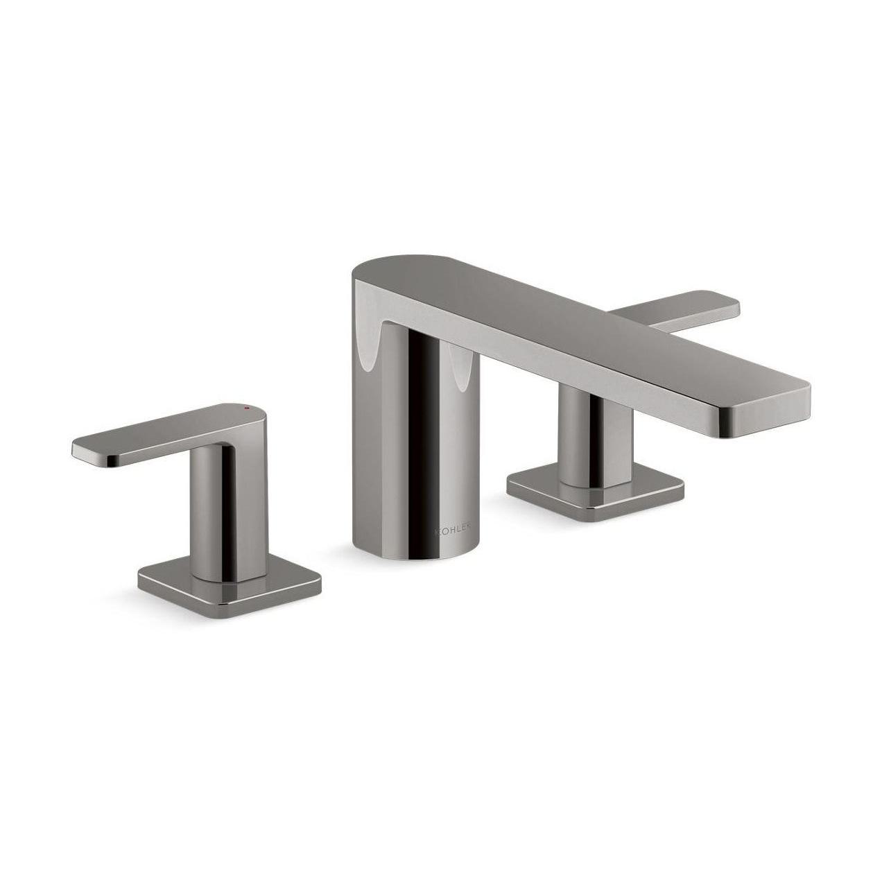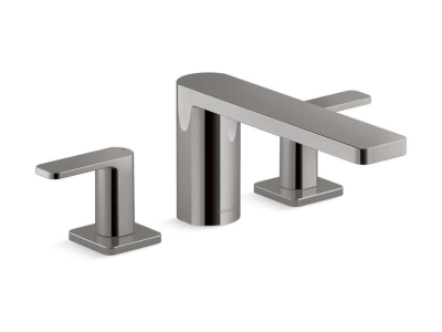 Kohler®, 27121-4-TT, Bath Faucet, Series: 27121-4, Parallel® Collection, 10 gpm Flow Rate, 8 in Center Distance, Fixed Spout, 8-3/16 in Spout Reach, 4-1/8 in Spout Height, Lever Handle, 2 Handles, 3 Faucet Holes, 3/4 in Connection, Hand Shower: No, 3 in Maximum Deck Thickness, Deck Mounting, Ceramic Disc, 4-1/8 in H x 16 in W x 8-1/4 in L Dimensions, Brass, Vibrant Titanium, Commercial Commercial/Residential