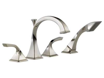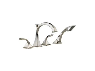 Brizo® Roman Tub Trim, Series: T67430, Virage®, 18.5 gpm, 10 to 16 in Center Distance, Slip-On Diverter Spout, 8-27/32 in Spout Reach, 5-11/16 in Spout Height, 60 to 82 in Hose, Metal Lever Handle, 2 Handles, 4 Faucet Holes, Spray Pattern: Full Body, Function: Traditional, 1 Spray Functions, Hand Shower: Yes, 2-1/2 in Maximum Deck Thickness, Deck Mounting, Ceramic Disc, Brass, Polished Nickel, Import
