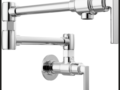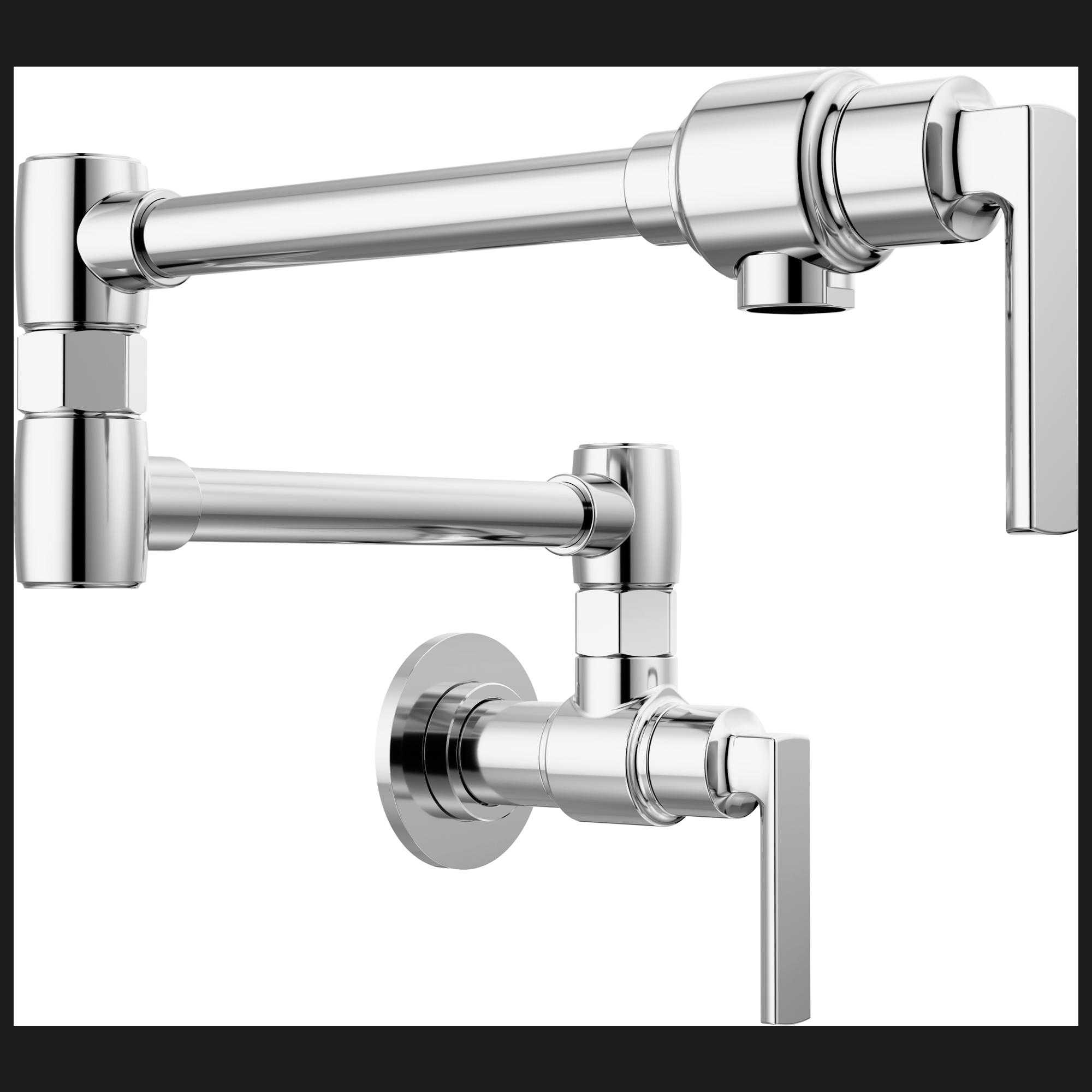 Brizo®, 62806LF-PC-L, Pot Filler, Kintsu® Collection, 4 gpm Flow Rate, Dual Jointed Swivel Spout, 20 in Spout Reach, Lever Handle, 2 Handles, 1 Faucet Holes, 1 in Faucet Hole, 1/2 in Connection, IPS Connection, Wall Mounting, Cartridge, 9 in H x 2.88 in W x 13.44 in L Dimensions, Brass, Chrome, Import