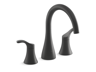 Kohler®, T26426-4-BL, Tub Faucet, Deck-Mount, Series: T26426-4, Simplice® Collection, Non-Diverter Spout, 2 Handles, 1/2 in Connection, Slip-Fit Connection, Deck Mounting, Ceramic Disc, 10-1/2 in H x 2-1/2 in W x 7-1/2 in L Dimensions, Matte Black