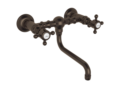 Rohl®, A1405/44XMTCB-2, Bathroom Faucet, Traditional Low Level, Acqui Collection, 1.2 gpm Flow Rate, Cross Handle, 2 Faucet Holes, Wall Mounting, Ceramic Disc Cartridge, Tuscan Brass