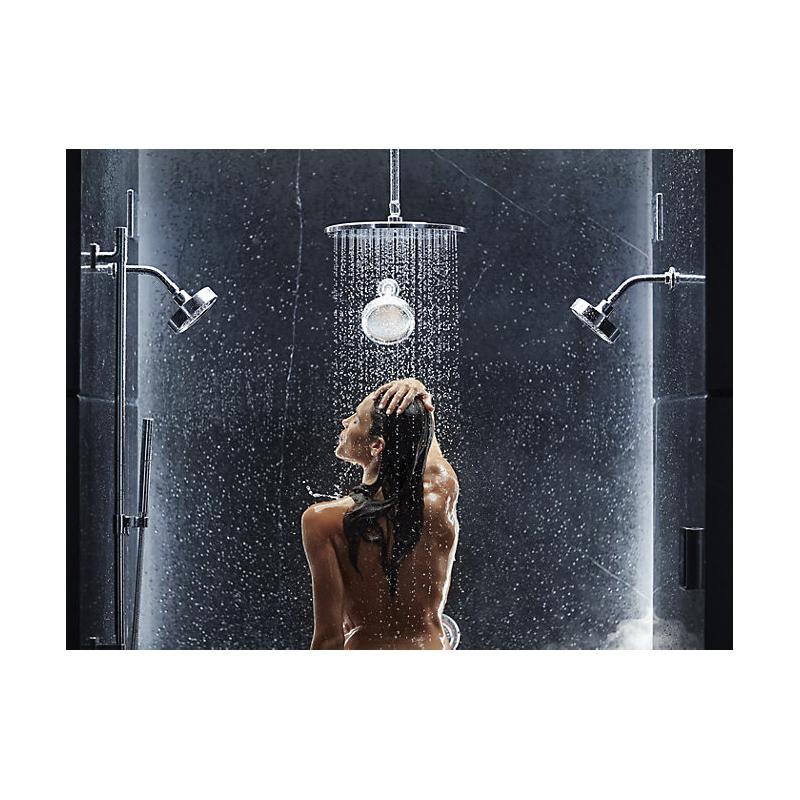 Enjoy a shower that simulates the soaking deluge of a warm summer downpour. This KOHLER® contemporary-style round ceiling-mount/wall-mount rainhead features innovative Katalyst® air-induction technology, which efficiently mixes air and water to produce large water droplets and deliver a powerful, thoroughly drenching overhead shower experience. Its clean design and durable finish coordinate with many other KOHLER® faucets and accessories.
