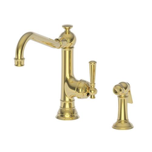 Newport Brass® Kitchen Faucet, Series: 2470-5313, Jacobean Collection, 1.8 gpm Flow Rate, Swivel Spout, 9-1/16 in Spout Reach, 7-11/16 in Spout Height, Lever Handle, 1 Handles, Side Spray(Y/N): Yes, 2 Faucet Holes, 2 x 3/8 in Connection, Compression Connection, 2 in Maximum Deck Thickness, Deck Mounting, Euro-Motion Ceramic Disc Cartridge, Solid Brass, PVD Forever Brass
