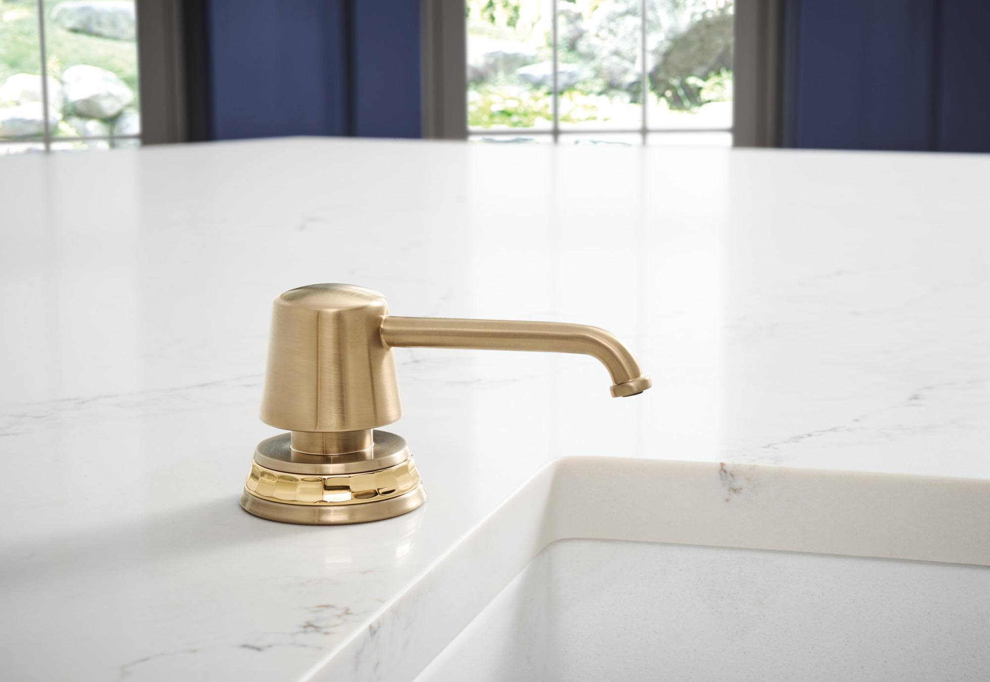 Brizo® RP101658GLPG Soap Dispenser, 15 oz Capacity, 5 in OAL, Deck Mounting, Import