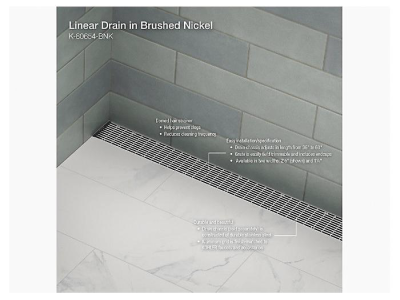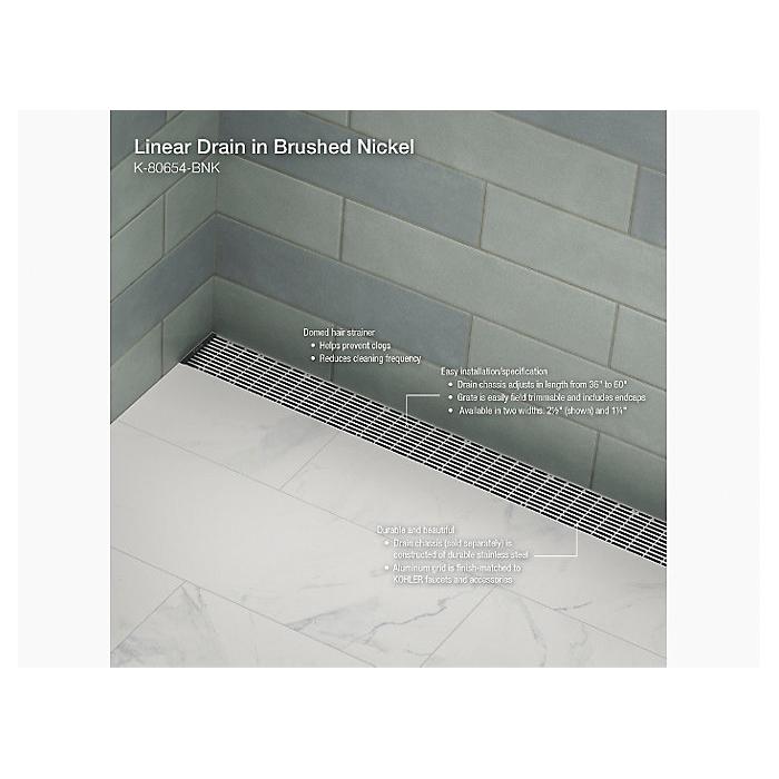 Incorporate this KOHLER® easy-to-install, linear shower drain grate into your next contemporary shower project for an elegant, minimalist look with maximum function. This innovative drain solution delivers the best-in-class quality you’ve come to expect from KOHLER®, including lightweight, durable, easily trimmable drain channel inserts featuring precision-machined grate patterns and anodized scratch-resistant finishes. Available in different patterns, finishes, and sizes to complete your custom home or commercial shower installation.
