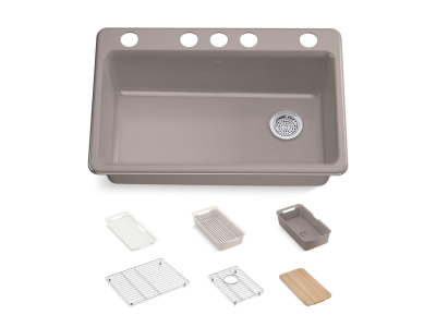 Kohler®, 5871-5UPC-TRF, Sink, Series: K-5871-5UPC, Riverby Collection, Rectangle Shape, 30-1/4 in Bowl Length, 15-13/16 in Bowl Width, 9 in Bowl Depth, 3-7/8 in Drain Opening, 5 Faucet Holes, 4 in Faucet Hole Spacing, 1 Bowls, 9-13/16 in H x 22 in W x 33 in L Overall, Undermount Mounting, Enameled Cast Iron, Truffle