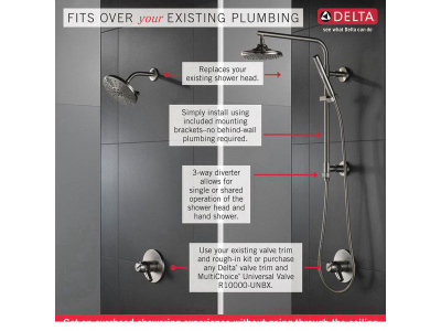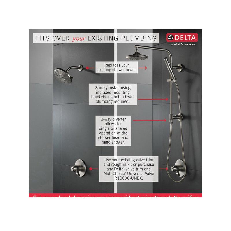 impactful design exude an upscale motif while the customizability of the hand shower and overhead shower head combo revitalizes your showering experience. The Emerge Shower Column works with any overhead shower head with no need to run plumbing through the ceiling. An integrated, 3-way diverter allows use of the overhead shower and the hand shower together or separately.