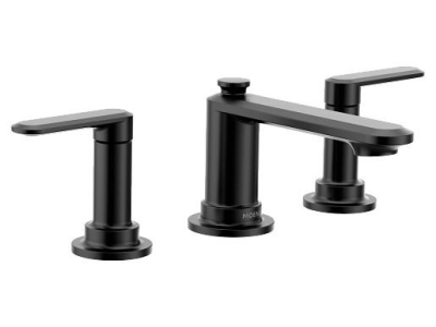 Moen®, TV6507BL, Bathroom Faucet, Low Arc, Greenfield™ Collection, 1.2 gpm Flow Rate, 8 to 16 in Center Distance, 5.03 in Spout Reach, 2-3/4 in Spout Height, Lever Handle, 2 Handles, Lift Rod Drain, 3 Faucet Holes, 1/2 in Connection, IPS Connection, 1-1/4 in Maximum Deck Thickness, Deck Mounting, 1234 Cartridge, Metal, Matte Black, Domestic