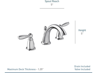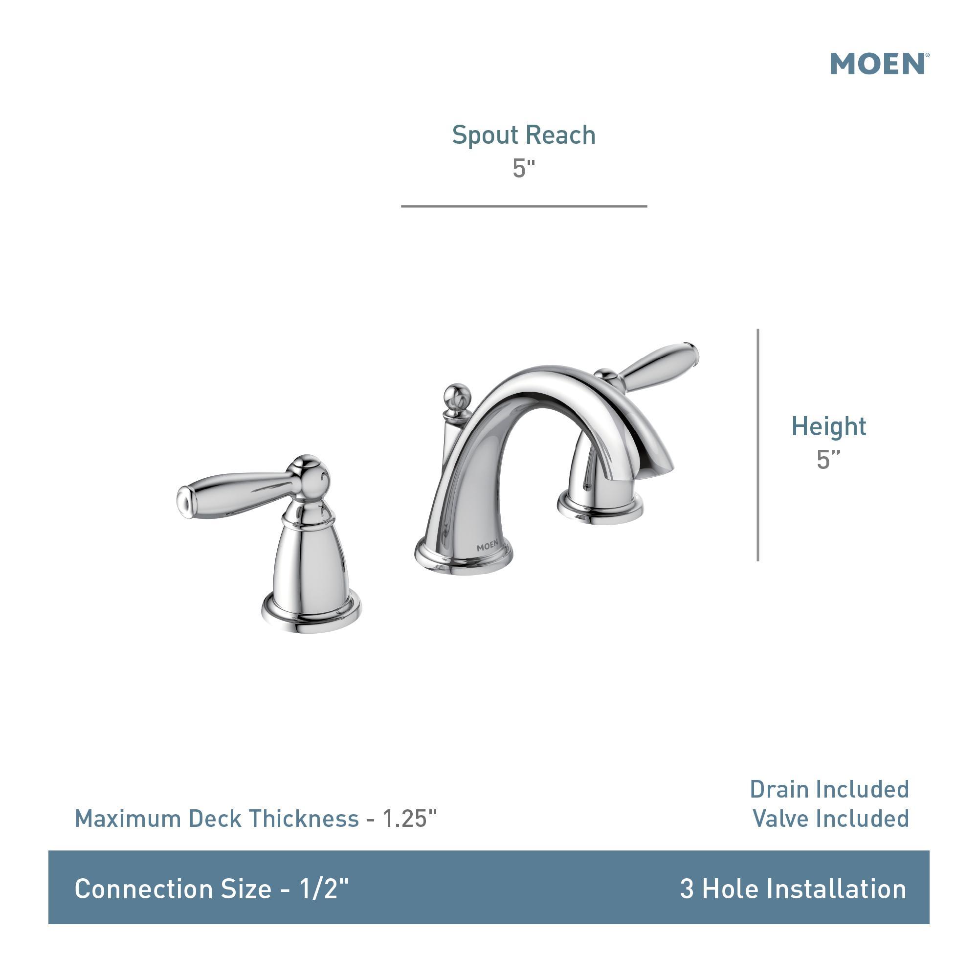Moen®, TV6620ORB, Bathroom Faucet, High Arc, Brantford Collection, 1.2 gpm Flow Rate, 8 to 16 in Center Distance, 5 in Spout Reach, Lever Handle, 2 Handles, Lift Rod Drain, 3 Faucet Holes, 1/2 in Connection, IPS Connection, 1-1/4 in Maximum Deck Thickness, Deck Mounting, 1234 Cartridge, Metal, Oil Rubbed Bronze, Domestic