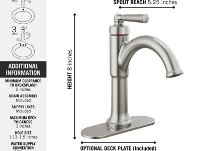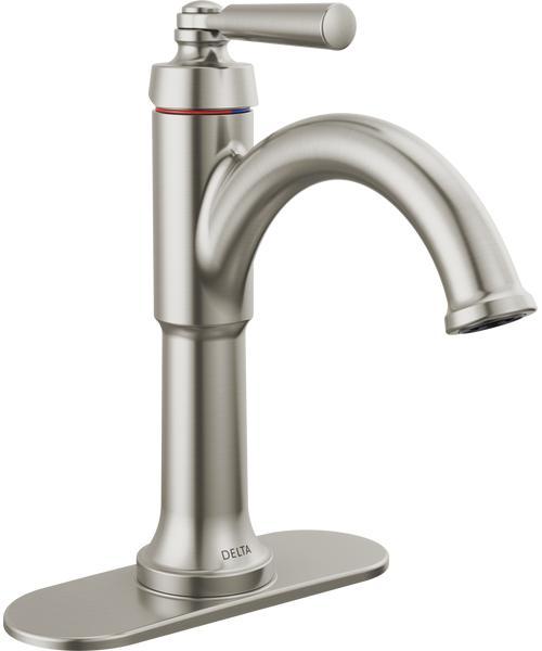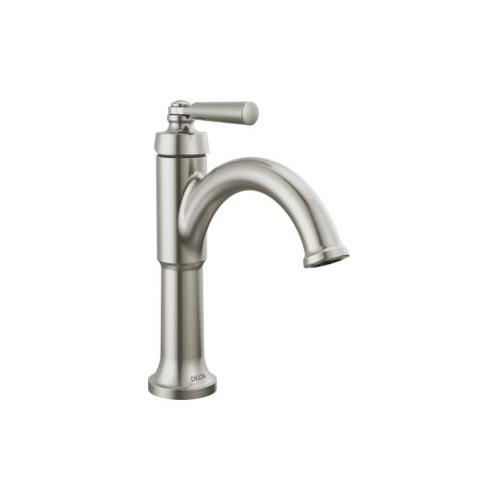 DELTA®, 535-SSMPU-DST, Single Handle Bathroom Faucet, SAYLOR™ Collection, 1.2 gpm Flow Rate, Fixed Spout, 4.25 in Spout Reach, 4.56 in Spout Height, Lever Handle, 1 Handles, Pop-Up Drain, 1 Faucet Holes, 1/4 in Connection, Compression Connection, Function: Lavatory, 2.9 in Maximum Deck Thickness, Deck Mounting, Ceramic Disc, 8.63 in H x 6 in W x 6.88 in L Dimensions, Zinc, Brilliance Stainless, Import