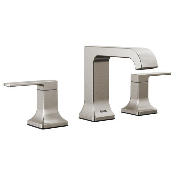DELTA®, 3539LF-SSMPU, Bathroom Faucet, Traditional, Velum™ Collection, 1.2 gpm Flow Rate, 4 to 16 in Center Distance, Fixed Spout, 5 in Spout Reach, 3-13/16 in Spout Height, Lever Handle, 2 Handles, Pop-Up Drain, 3 Faucet Holes, 1/2 in Connection, NPSM Connection, 1-5/8 in Maximum Deck Thickness, Deck Mounting, Washerless Stem, 5.06 in H x 11.88 in W x 6.31 in L Dimensions, Zinc, Stainless, Import