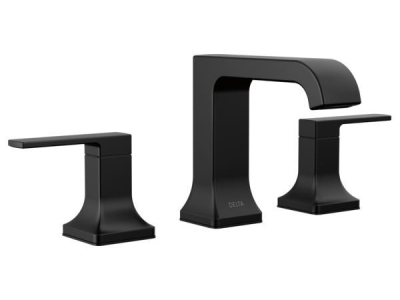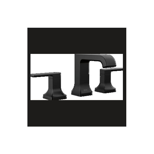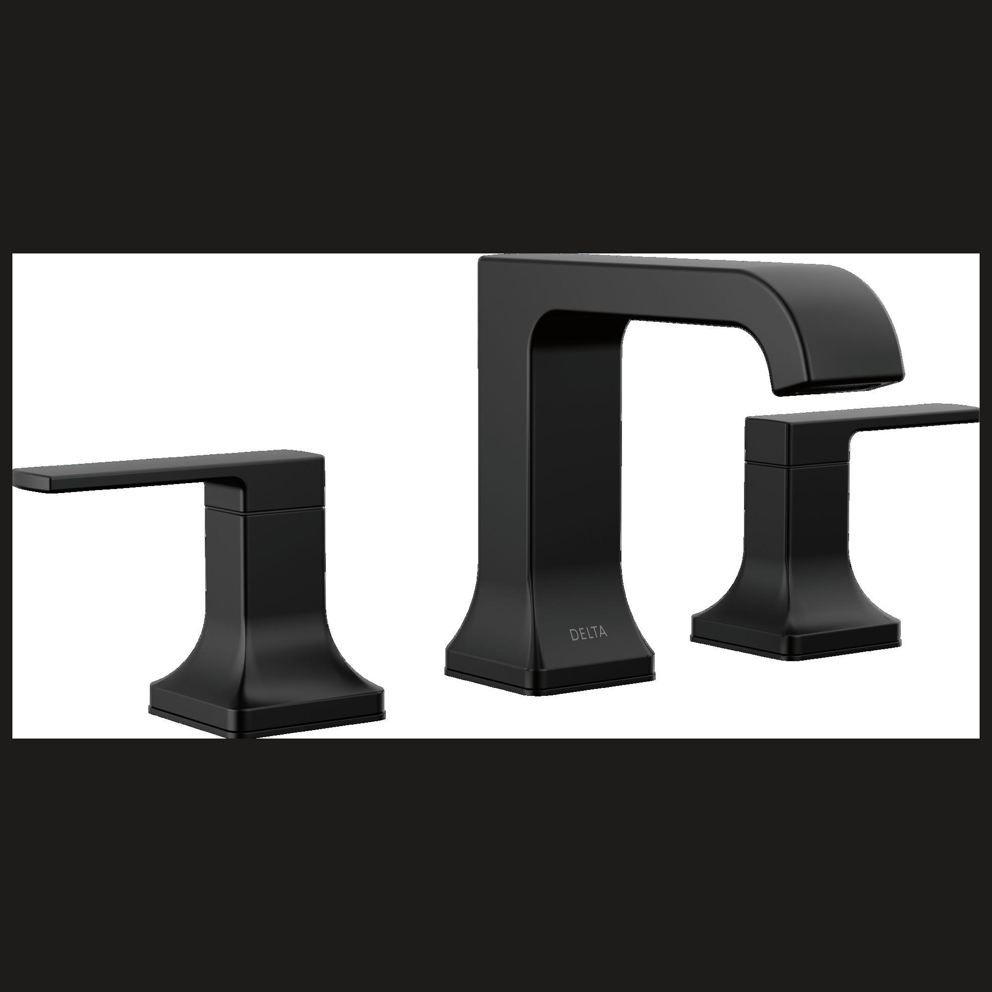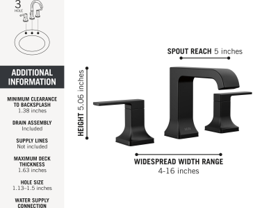 DELTA®, 3539LF-BLMPU, Bathroom Faucet, Traditional, Velum™ Collection, 1.2 gpm Flow Rate, 4 to 16 in Center Distance, Fixed Spout, 5 in Spout Reach, 3-13/16 in Spout Height, Lever Handle, 2 Handles, Pop-Up Drain, 3 Faucet Holes, 1/2 in Connection, NPSM Connection, 1-5/8 in Maximum Deck Thickness, Deck Mounting, Washerless Stem, 5.06 in H x 11.88 in W x 6.31 in L Dimensions, Zinc, Matte Black, Import