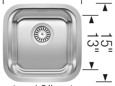 Blanco, 441026, Bar Sink, Series: DIAMOND™, SILGRANIT® Collection, Squared Shape, 13 in Bowl Length, 13 in Bowl Width, 6-1/2 in Bowl Depth, 3-1/2 in Drain Opening, 1 Faucet Holes, 1 Bowls, 15 in L x 15 in W Overall, Undermount Mounting, 18 ga 304 Stainless Steel, Refined Brushed