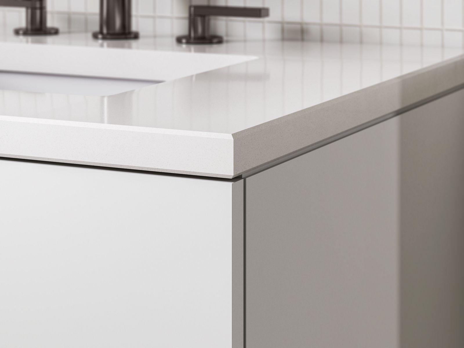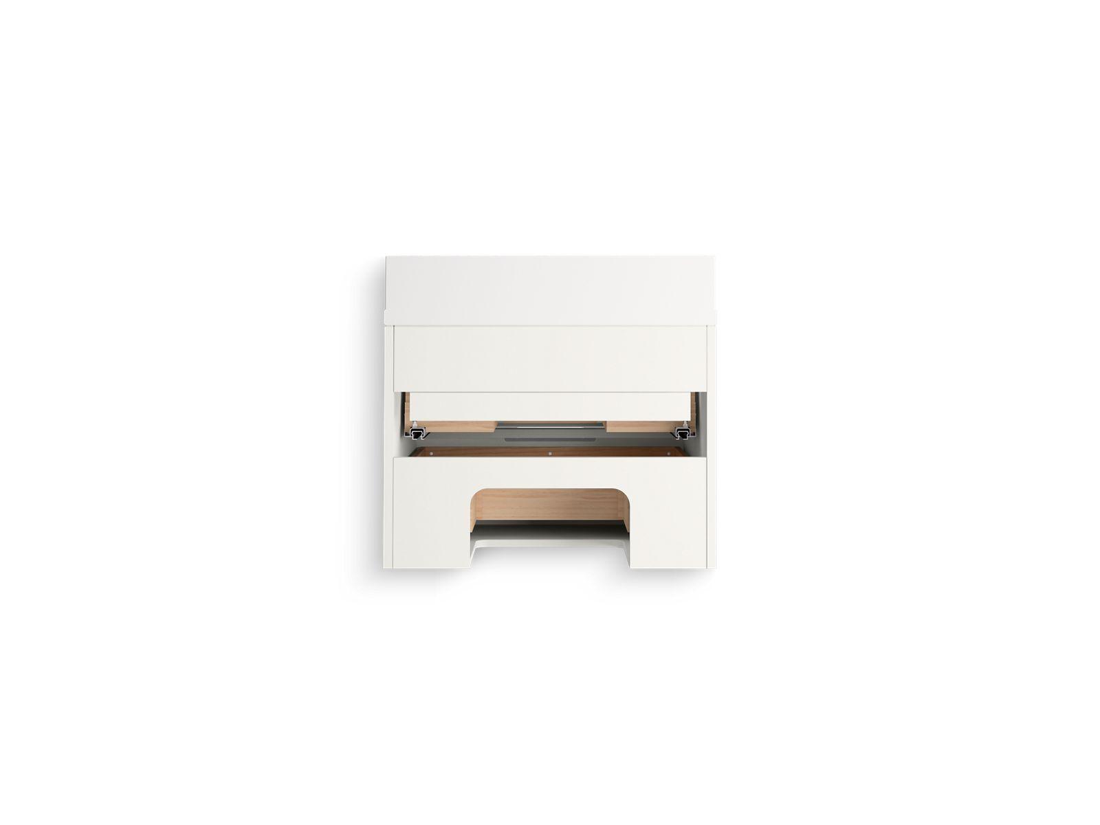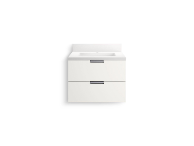 Kohler®, 34653-0, Bathroom Vanity Cabinet, Contemporary, Series: 34653, Maxstow™ Collection, 23-3/8 in Overall Height, 25 in Overall Width, 22-7/16 in Overall Depth, Wall Mounting, 25 in W x 22-7/16 in D Top, Wood Cabinet, White Cabinet, Vitreous China Basin, 2 Doors, 2 Drawers, 1 Basins, 2 Shelves, Quartz Top, 3 Faucet Holes