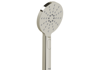 RIOBEL, 4364PN, Handshower Hand Set Single-Function, Riobel Cross Collection, 4-3/4 in Shower Head Diameter, 2-Function Shower Head Patterns, 2.0 gpm Flow Rate, Dual-Function Spray, Nickel, 10-3/8 in H x 2-5/8 in W x 5/8 in D Dimensions, Import