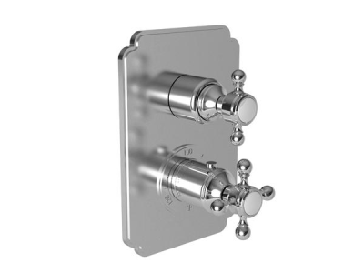 Newport Brass® Shower System Trim, Square, Series: Model 3-923TS, Astor Collection, 2 Handles, Traditional Cross Handle, 5.5 in L x 3.86 in D x 8.25 in H Trim, Thermostatic Ceramic Cartridge, Hand Shower: No, 80 psi Pressure, 185 deg F, Wall Mounting, For Use With: Luxtherm® Model 1-741 1-Port, 1-742 2-Port, 1-743, 1-744 3-Port 1/2 in Thermostatic Rough-In Valve, Solid Brass, PVD Satin Nickel