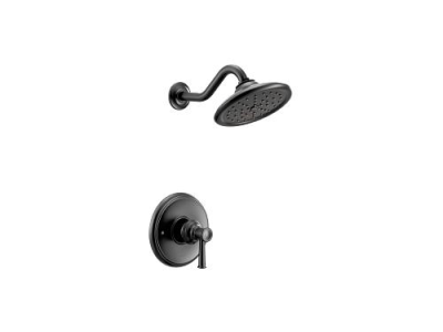 Moen®, UT3312EPBL, Shower Trim, Pressure Balanced, Series: UT3312, Belfield™ Collection, 1.75 gpm Shower Flow Rate, 1 Handles, Lever Handle, 6.75 in Trim, 1213 Ceramic Disk Volume Control Cartridge, Hand Shower: No, Spray Pattern: Rain, 1 Spray Functions, Wall Mounting, Metal, Matte Black, 7-1/8 in Dia Dimensions, Domestic